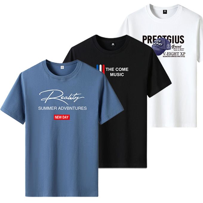 3 T-shirts in one packageMaterial: Cotton Shirts Collar shape: round collarColour: MulticolourStyle: casualModel: slim modelQuality Print Shirts Perfect Finishing Shirts Attention Please: For transportation needs, the cloth that you've received will have a fold phenomenon. Please don't worry, this fold situation will disappear after the first time you clear or ironing. About color: Pictures are only samples for reference. Due to limitations in photography and the inevitable differences in monitor settings, the colors shown in the photograph may not correspond 100% to those in the items themselves