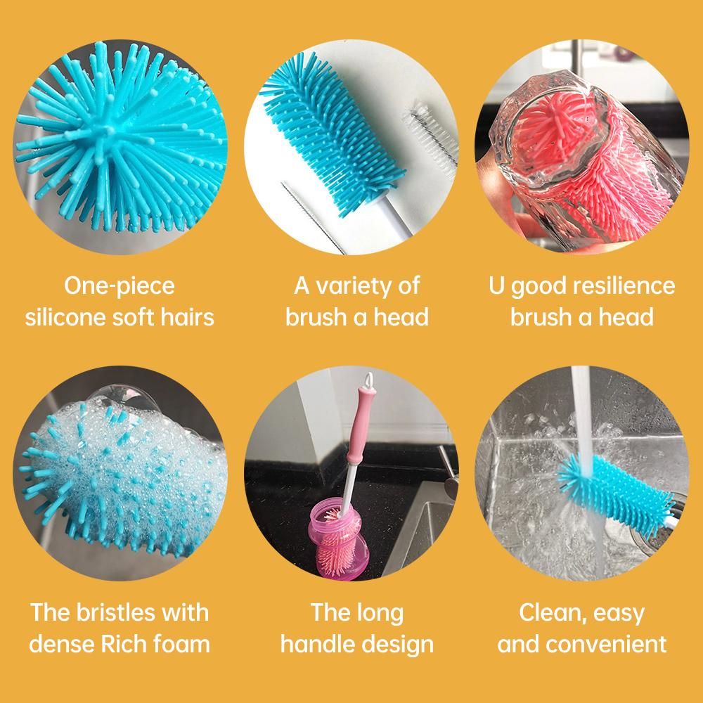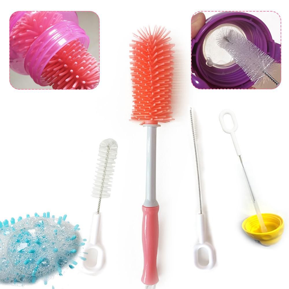 Buy 3 Pcs Soft Baby Bottle Brush Bottle and Straw Brush Cleaning Set for Child with Silicone Bottle Brush Nylon Nipple Brush and Stainless Steel Straw Brush in Nigeria
