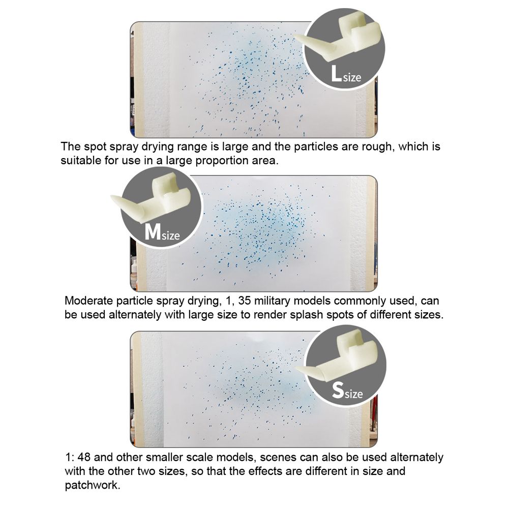 This small tool set includes 3pcs different size splash effect creation tools, you should use this tool with your airbrush together. If you are looking for this tool, come and have a try, it will not let you down.