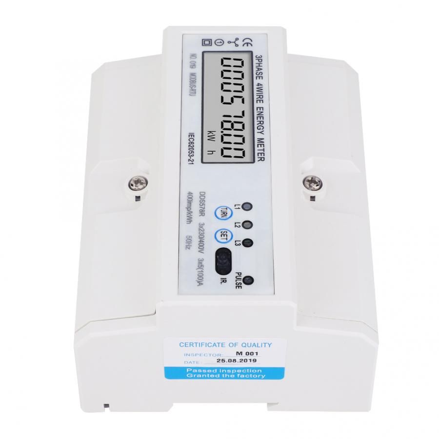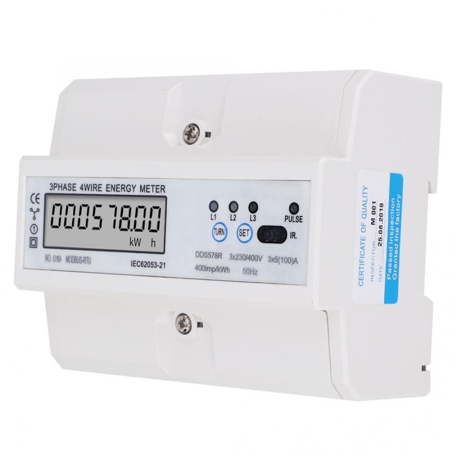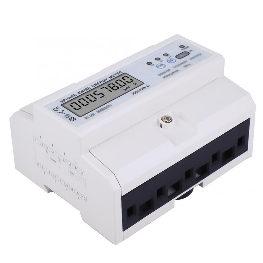 1X 3 Phase 4 Wire Digital LCD KWH Meter DIN Rail Wattmeter Electric Energy Meter with RS485 Power Meter
