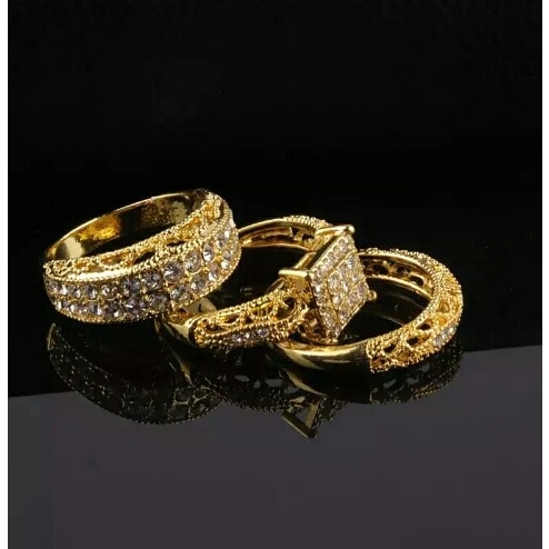 Buy 3 Piece Bridal Set Wedding And Engagement Rings - Silver And Gold in Nigeria