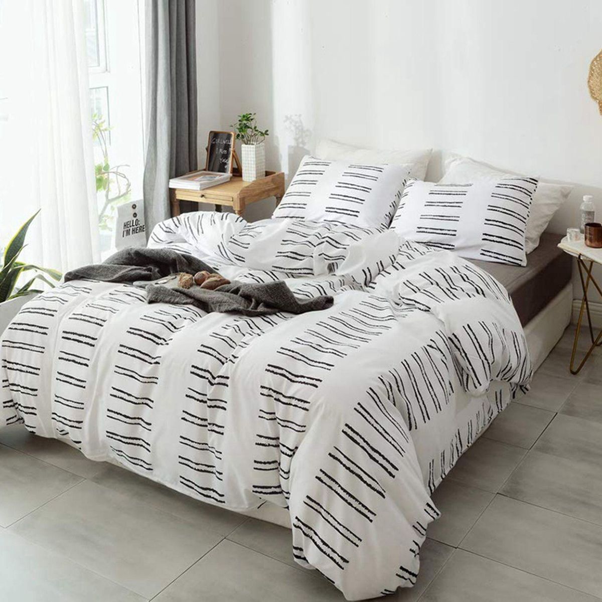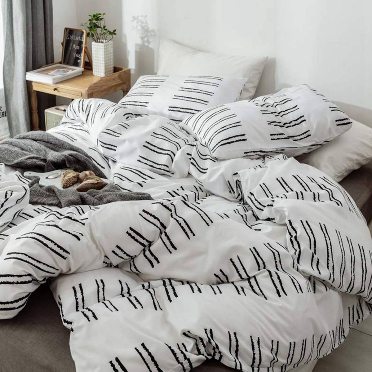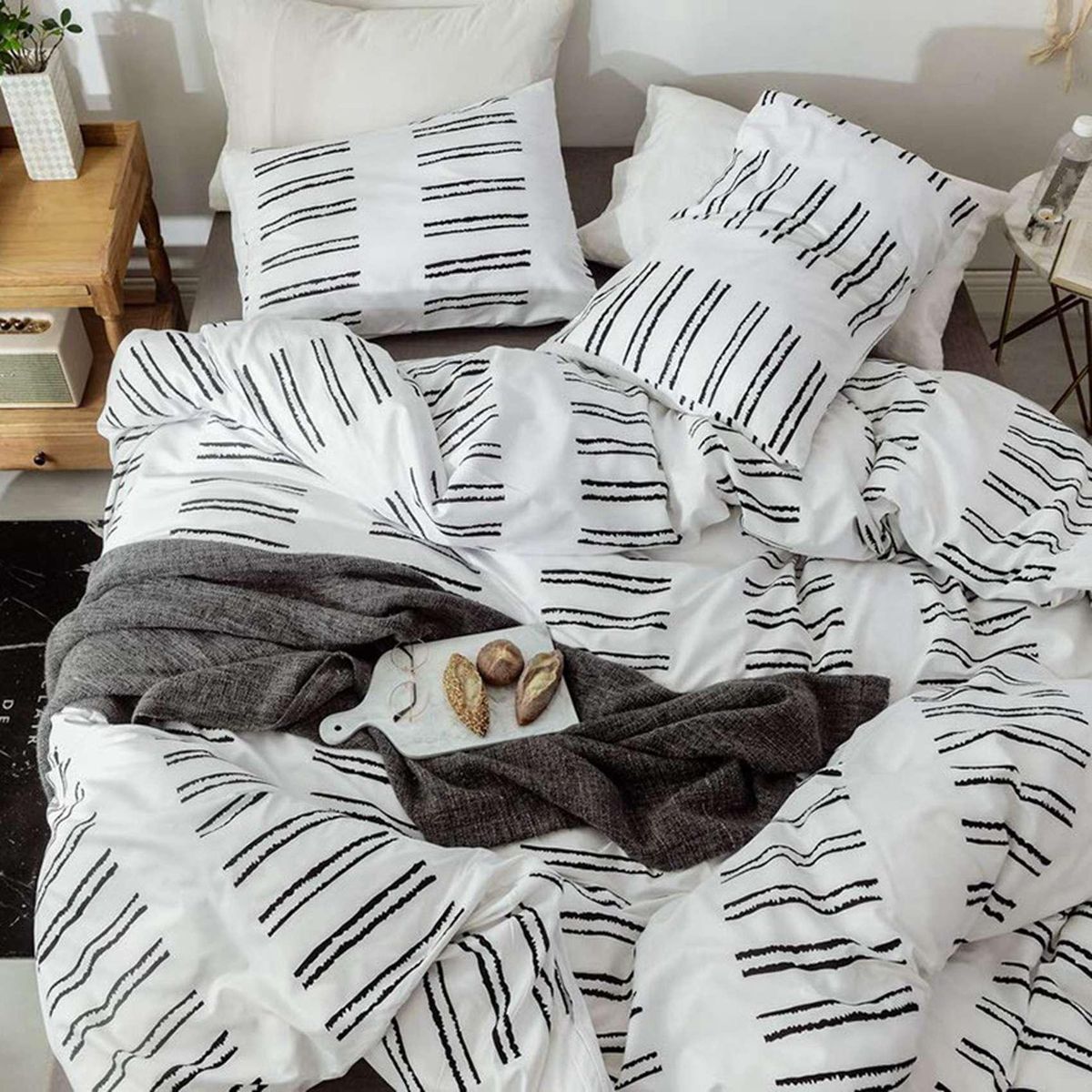 Chic patterns: black striped geometric design, elegant bedding for all seasons. Suitable for children, adolescents, adults, unisex, students, boys, girls home decor.