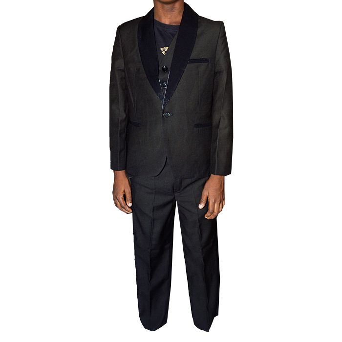 The old adage holds true: black is beautiful. The ideal option for formal and social occasions, the Solid Black Suit is the definition of sleek. Go traditional or go new age rock star...this suit is a simple must have for every boy child. It comes in varieties of colors. Make your boy look special on that special day. It's feature include: Jacket, Pant trouser, Waist Coat, Shirt And Tie. Select the age bracket when placing order. It's available for ages 3 -12 years. BUY NOW AT A POCKET FRIENDLY PRICE!