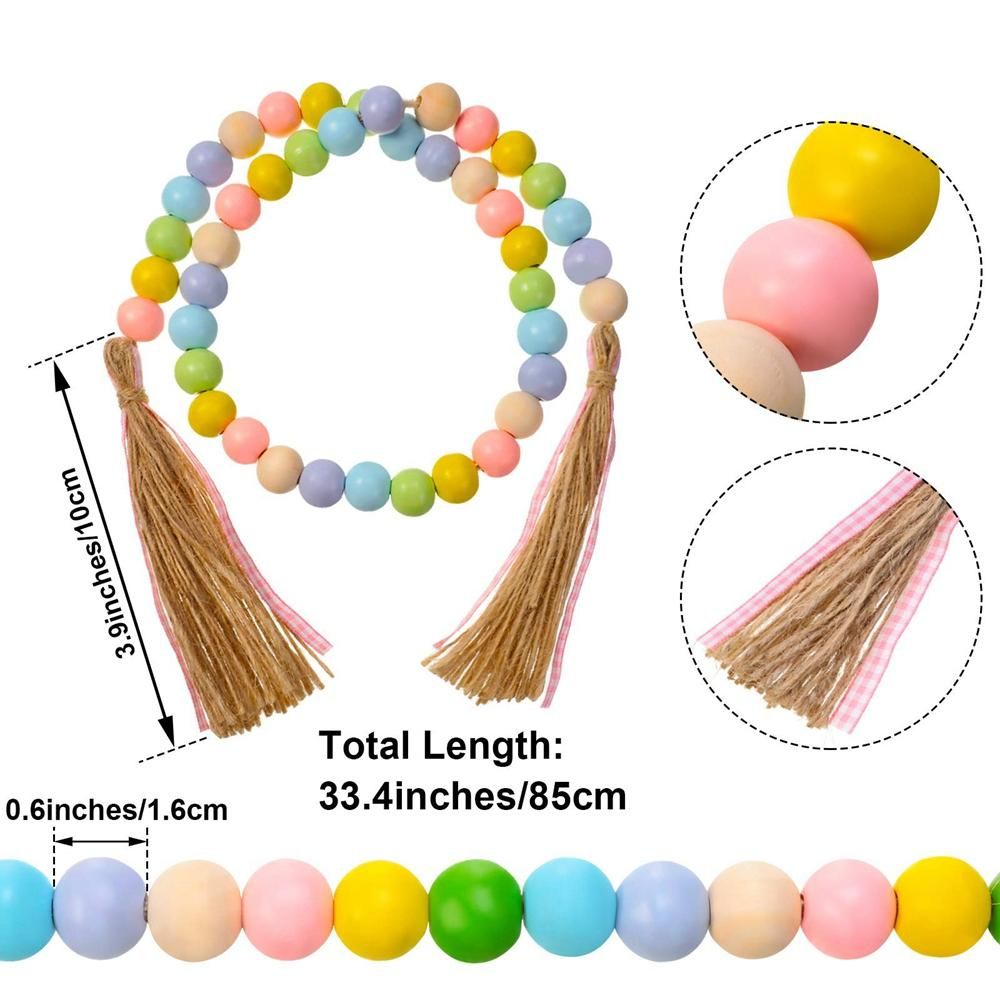 Detailed Information About The Product:Easter design: the wooden bead garland comes beautiful colors of purple, blue, green, yellow and pink, and is scattered with ropes and pink buffalo tassels, with Easter eggs, bunny wood chips, elegant and versatile; Applicable to various Easter style decorations to brighten up your house, this makes us feel the joy of the Easter and the good Easter holiday atmosphere.