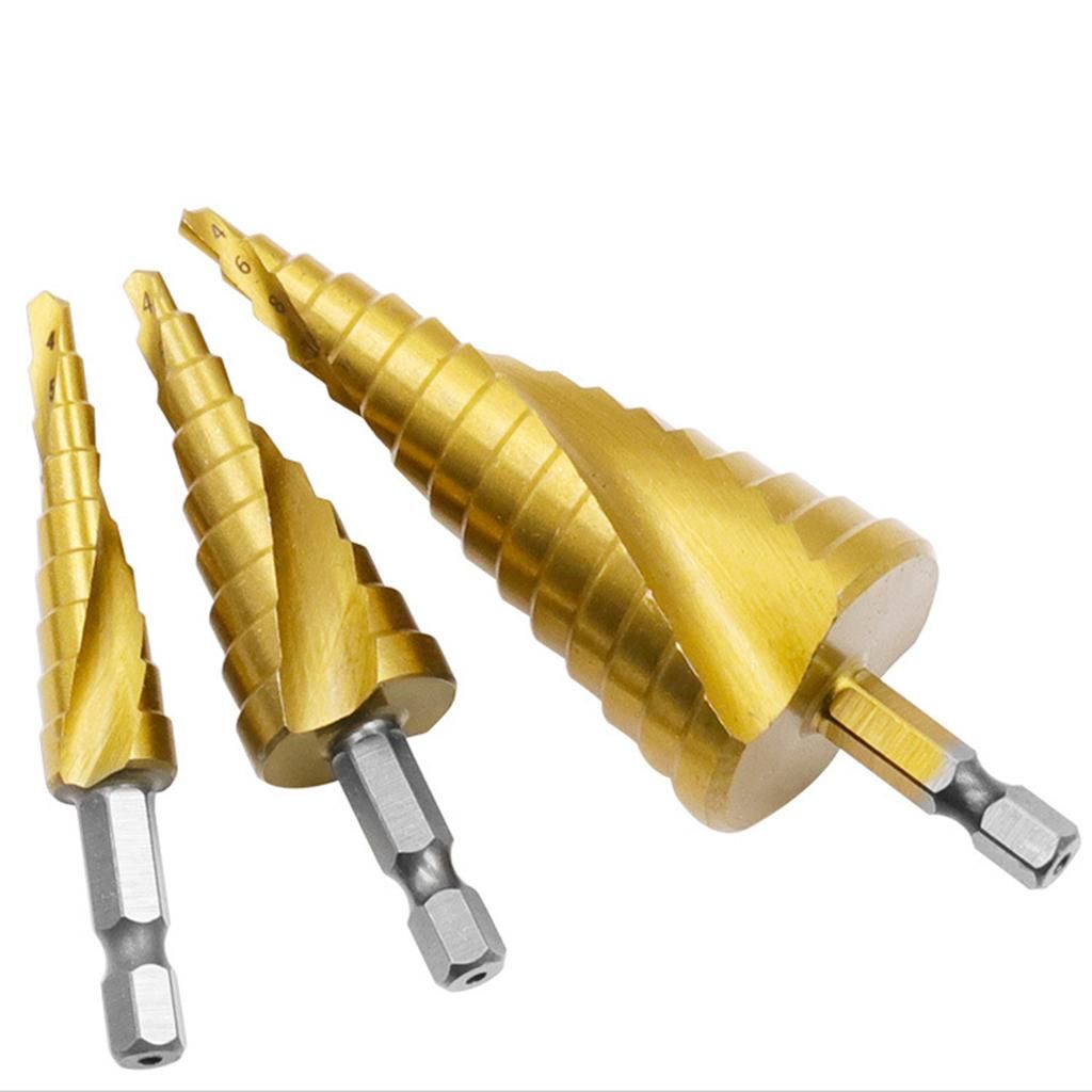 Step drill set used for steel, fine metal (thickness ≤ 5 mm), wood, fine iron, , aluminium, PVC, fibreglass and other materials.