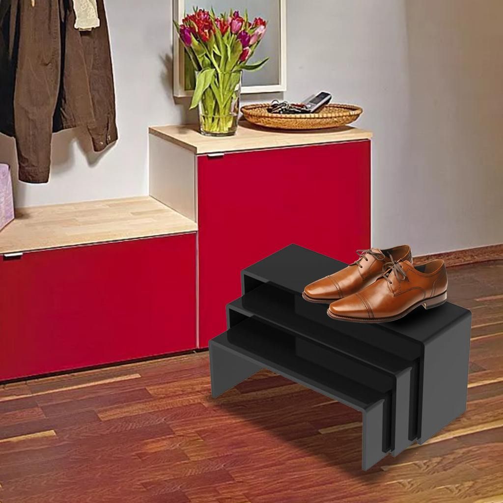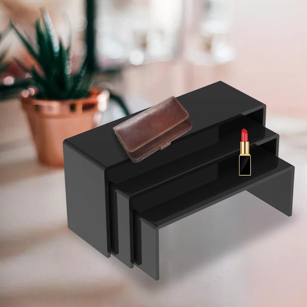 Nice Display: The display rack shelf stand can help you to create an eye catching feature of your products.Widely Used: Great for displaying and organizing, accessories or wallet, mini cartoon figures, , glasses, mobile phone, toiletries, food, kitchen bottles, or any other items.Sturdy: Made of high strength Acrylic plate, very stable and sturdy for last-long using, not easy to damage.The set includes three different size, which can meet your various demands.Neat and Tidy: Let us to display an assortment of products in a neat and organized arrangement.