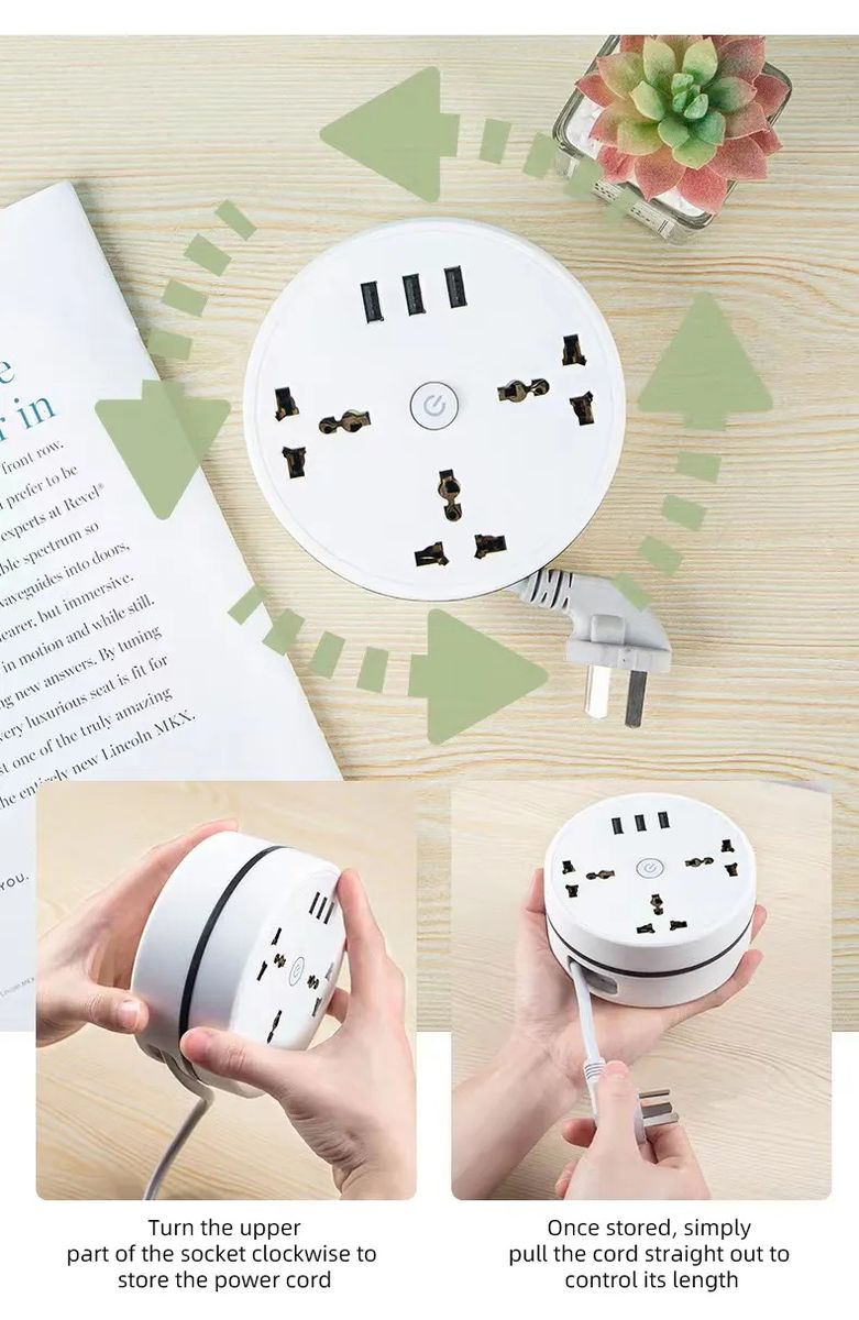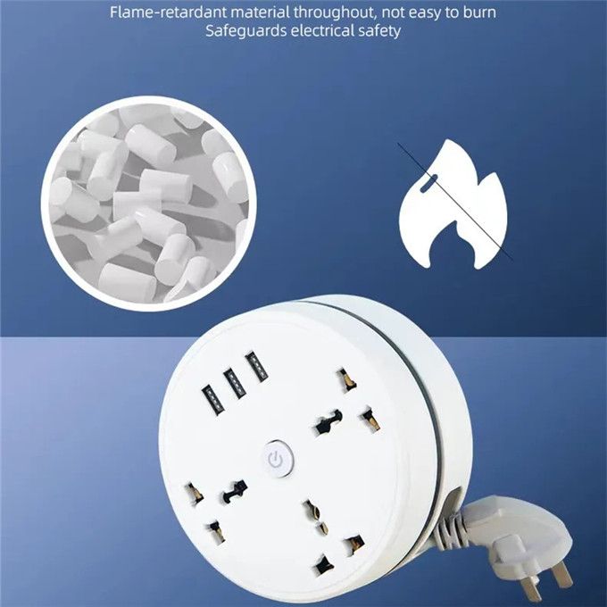 3 USB blue light display lights, 3 -hole extended cables can be stored in the socket: The blue light indicator notifys your extension cable is power supply and can be used at any time. This design is due to*reason to ensure that you turn off the cable when you leave.