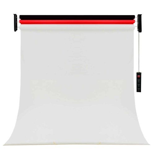 - Remote-controlled electric assembly makes raising and lowering your backgrounds quick and easy.