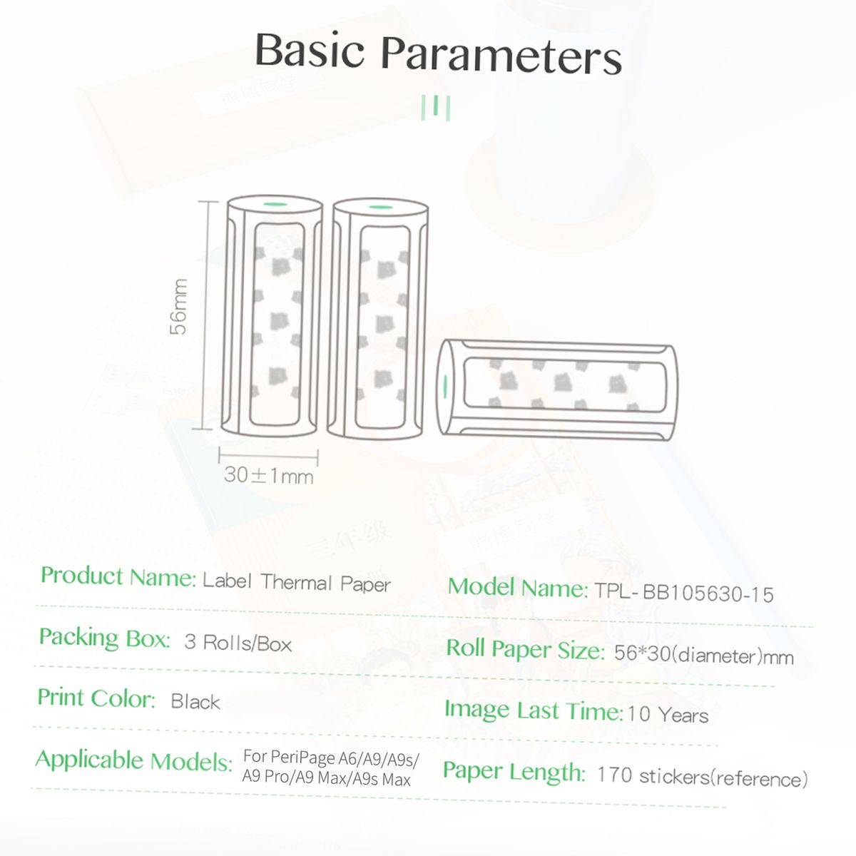 Paper Roll Size(1 Roll): 56*30mm