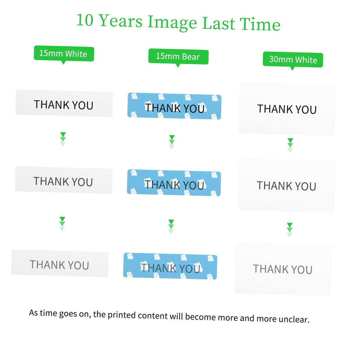 As time goes on, the printed content will become more and more unclear.