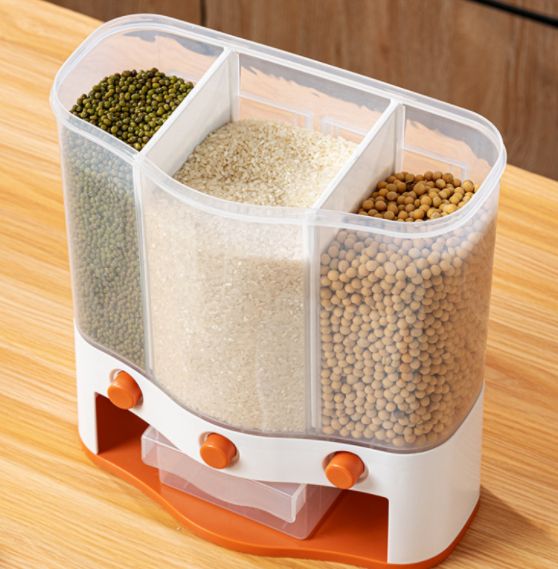 6 section rice\grain dispenser- Environmentally friendly PP, moisture-proof and insect-proof, movable partition, random division, narrow design, save space.