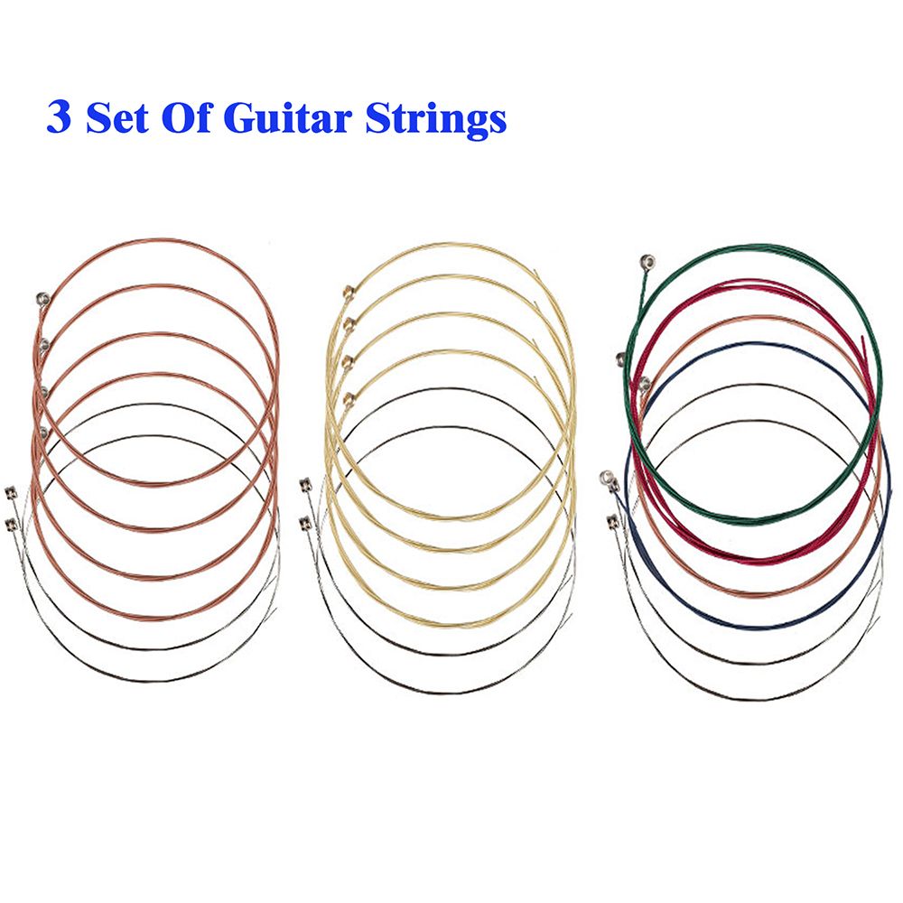 3 sets of Acoustic folk guitar strings in different color, 6pcs/set.
