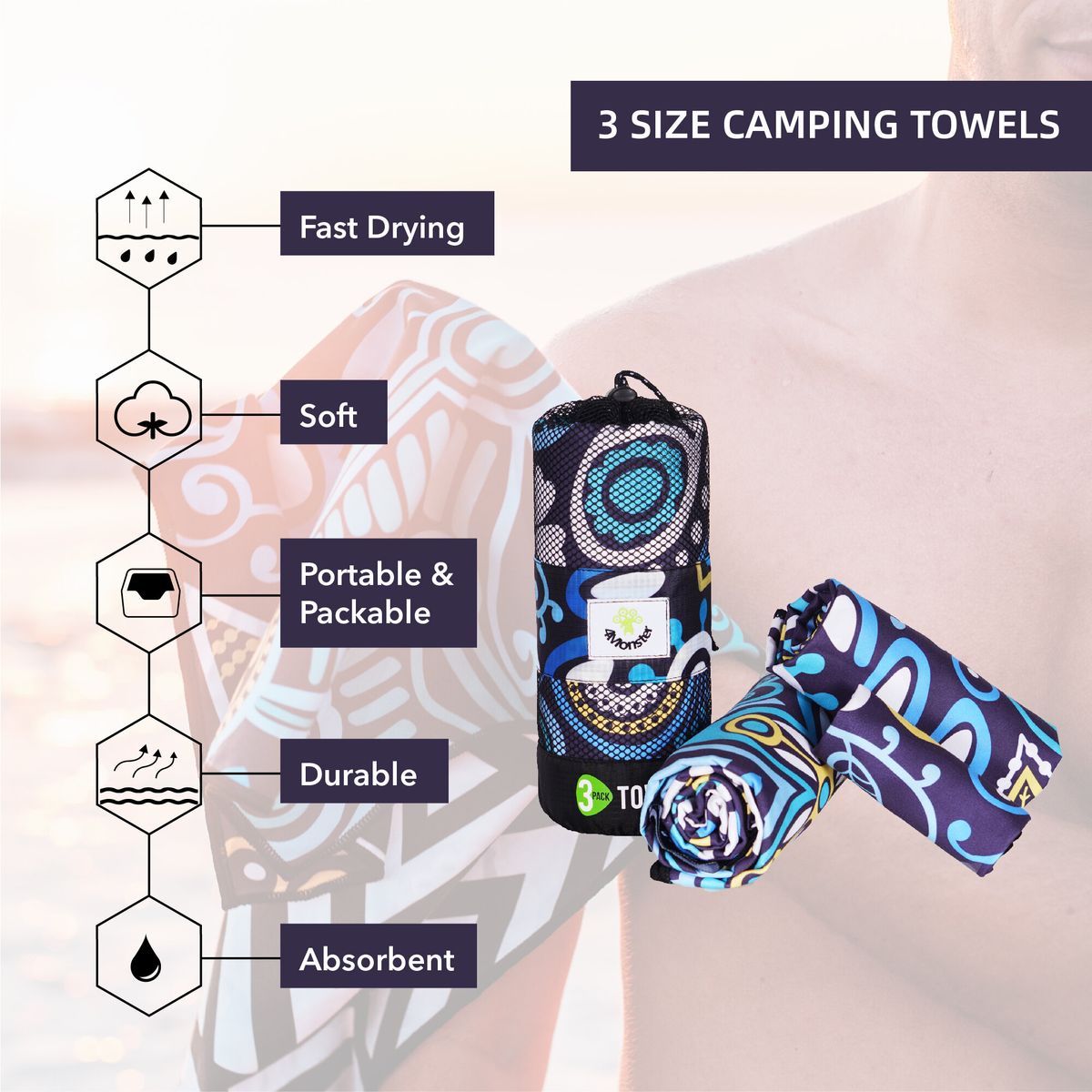 4Monster Microfiber Camping Towels Set