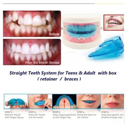 Note:To keep it clean, you just need to soak it in mouth wash for 25-30 minutes. Pay Attention:1. A few people may have drooling, toothache, nausea and other inadaptability in the early use, which belongs to normal physiological reaction and needs to adapt for a period of time.2. Don't bite too hard or eat too fast or too hard during wearing.3. Close your mouth naturally when you wear it. Don't chew with your teeth.4. It is not recommended to use during steel wire.5.Tooth orthodontic is a long process, please be patient for the effect.