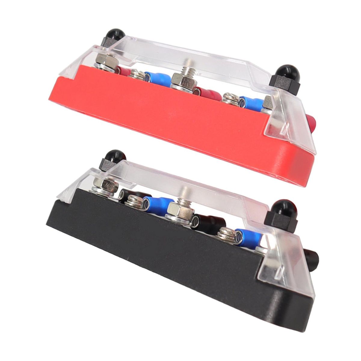 【Easy to Use】3 Post power distribution block bus bar, Come in pairs, include positive bus bar red and negative bus bar black, First insert the wire into the terminal, then open the protective cover, and finally pass the screw through the terminal, and tighten the screw to fix the terminal. The wires will not come loose.