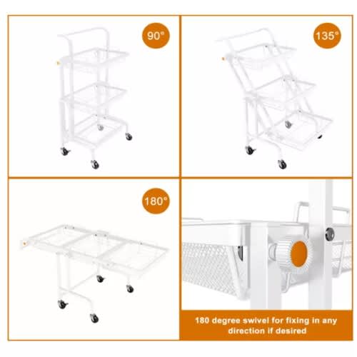Buy 3 Tier Convertible Foldable Metal Full Trolley Utility Cart/Storage Rack With Wheels - White in Nigeria