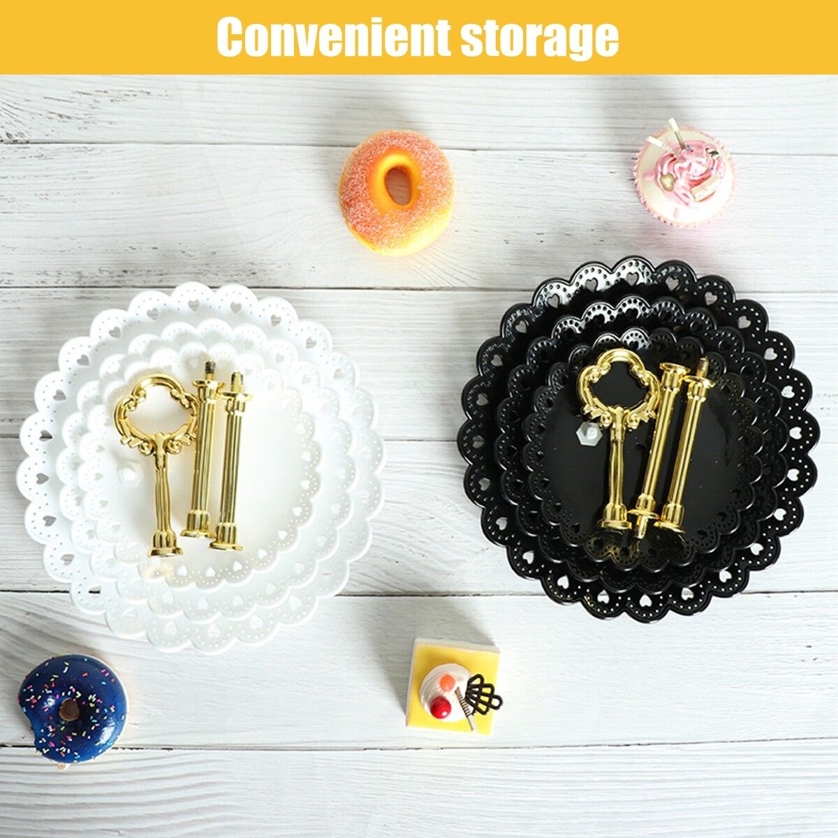 Features:-- No fading ,easy to use, so your cupcakes wont fall.-- Bottom tier Diameter: 15/18/22 CM. 3 tiers, easy to assemble and disassemble.-- You can easily set up this cupcake holder.-- In less than a few minutes you will already have a 3 tier Cupcake Stand.-- Avoid the hassle of setting up your decorations. Save time with these cupcake holders.-- You will be saving your time and will have a cool party display.