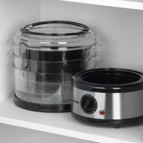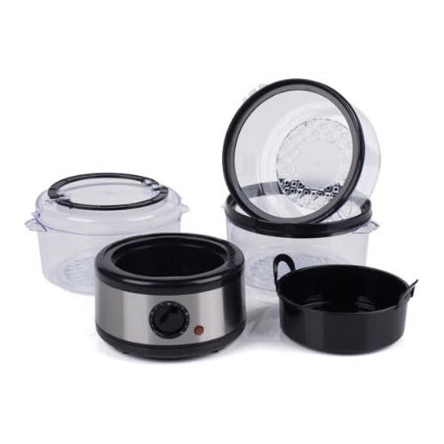 Bosch 8 Layers Food And Vegetable Dehydrator - 1550WSimply insert your food into the trays and hit the switch to activate a new and healthier level of food preparation. The Bosch food Dehydrator effectively works to remove moisture, drying your food and reducing spoilage. The multi-level trays allow for enhanced air-flow that dehydrates for prolonged food shelf-life & preservation. Your food will last longer and the removal of moisture content is far more beneficial than canning or freezing.Dehydration with the Bosch food dehydrator retains up to 97% of the food's nutritional value and is scientifically tested to reduce spoilage times -- and best of all, it will still tastes great! Once dried, your food will retain its vitamins, minerals and flavor! The simple one-touch button operation makes it even easier to prepare foods like meat, fish, poultry, fruits, vegetables and more!Save time, save money and save valuable cabinet space since the dehydration process shrinks your food, making it great for food storage or stocking up for the winter. It works great with a wide variety of food groups and is perfect for making healthy, oil-free veggie chips for the kids or hardy beef jerky for dad. Reduce spoilage and enjoy enhanced food preservation with the Bosch Kitchen Dehydrator.Multi-Tier Kitchen ApplianceDehydrates Food for Enhanced PreservationScientifically Tested to Increase Food Shelf LifeEasy, Single Button Operation and Nutritious ResultsFaster & More Efficient Alternative to Food DehydrationEffectively Dries Food by Removing Moisture ContentGreat for Food Storage: Drying Causes Food to ShrinkFood Reconstitution: Food Absorbs Water & Swells to initial SizeDehydration Retains up to 97% of Vitamins & MineralsHealthier Choice Alternative than Canning or FreezingYour Food Maintains Nutritional ValuePrepare Healthy Snacks for All AgesDries Your Food to Reduce SpoilageStain Resistant & Easy-to-CleanSimple One-Press Button OperationReaches Maximum Temperature of 180 & deg; F(5) Tier Trays for Enhanced Air-FlowHigh-Heat Circulation Travels Through Each TrayHeat Resistant and Dishwasher Safe TraysWorks with a Wide Variety of FoodsMeat, Fish, Poultry, Fruits, Vegetables and MoreUse for Meats to add in Stews, Soups, etc.Perfect for Making Oil-Free Veggie Chips