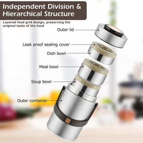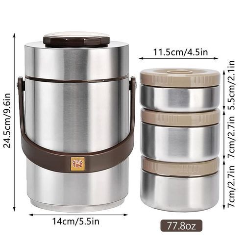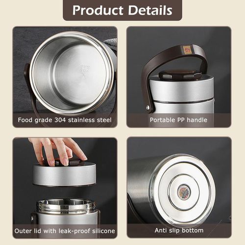 Built with 3 separately sealed container and 1 outer jar, large capacity enables you to pack various food for work, school, picnic or camping.You can bring hot food, such as fried rice, soup, pasta, together with cold food, such as salad, fruit, veggies or even nuts.