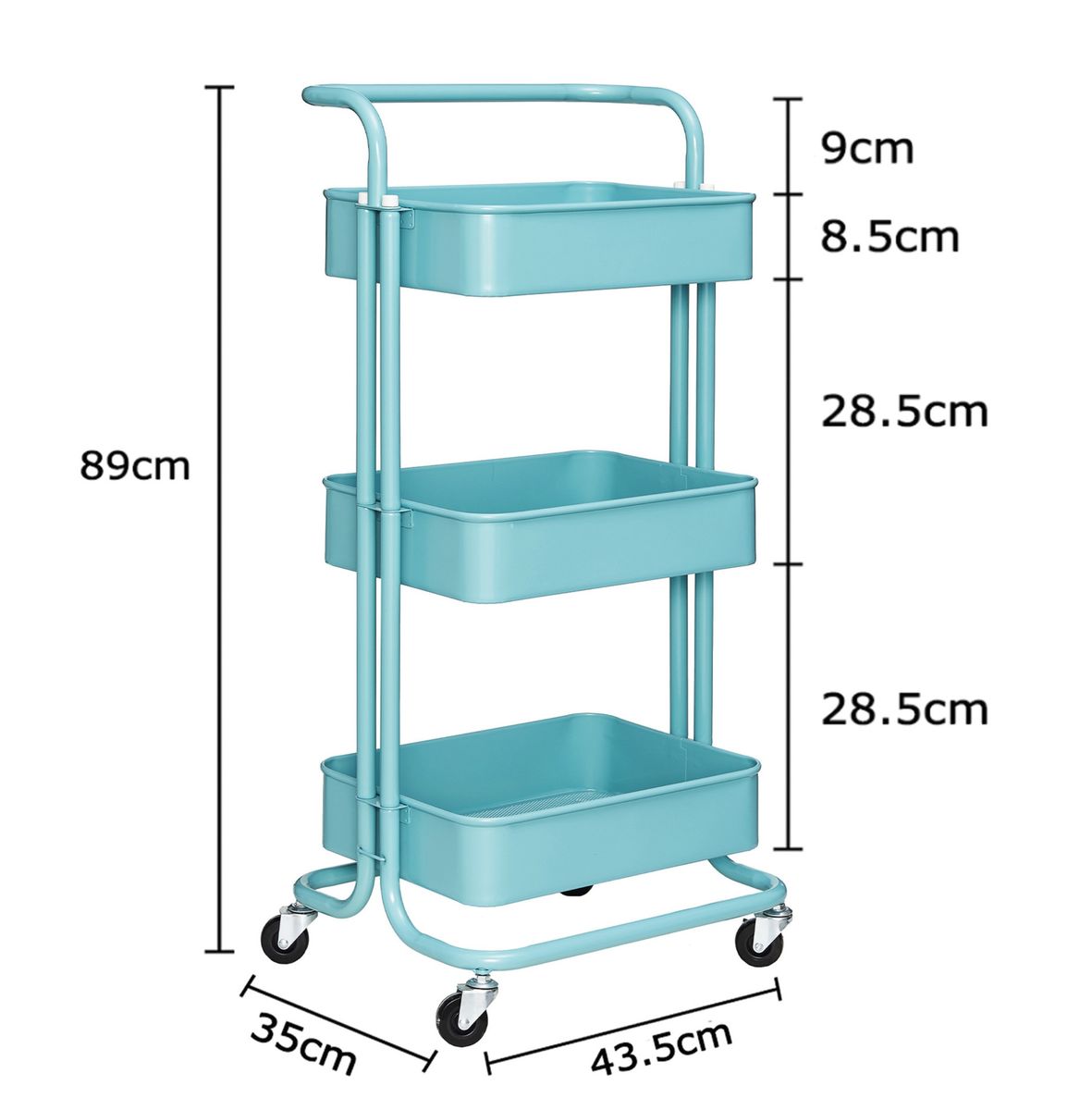 The storage rolling cart is well-constructed, sturdy, durable to use for many years. Per shelf has weight capacity up to 10KG