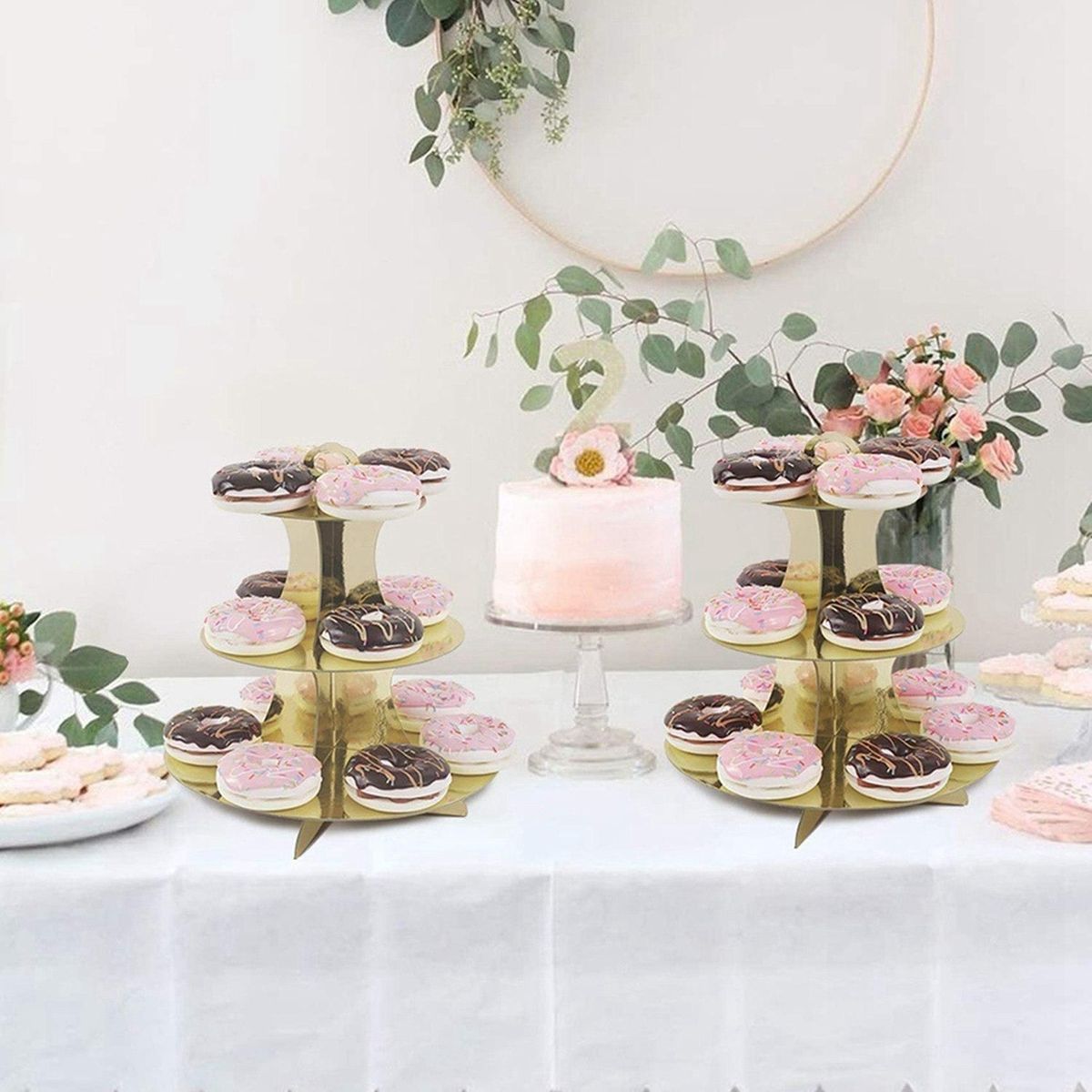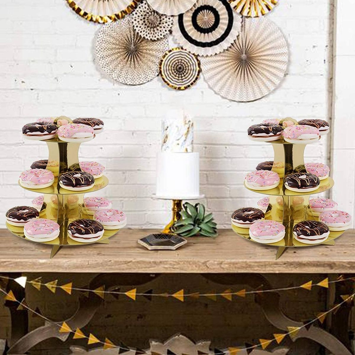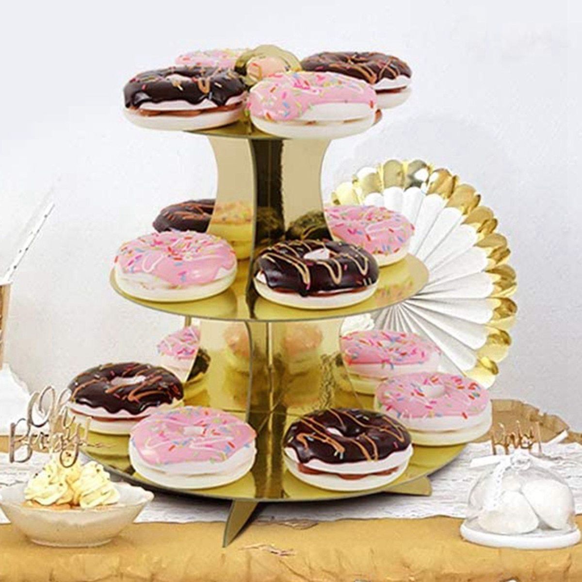 1. Material: Our 3 tier cupcake stand is made of high-quality cardboard, we use high-quality production technology to ensure that the cardboard is hard enough, the color is pure enough. Cake and cupcake stand combo lightweight, easy to move, stable, and lightweight. Make life easier.