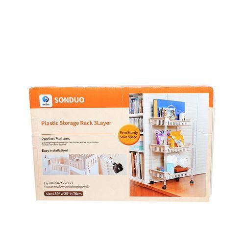 It gives you easy access to all your things.3- rack trolley is built to last for a long time, even with regular use and is made from 100% virgin plastic. Easy to clean and maintain with a unique design that makes it easy to assemble and disassemble the stand, cleaning and maintaining this storage rack is an easy task. simply wash the individual parts in a regular detergent solution and keep your storage rack looking new for a long time. 3-tiers rectangular multipurpose storage rack is an ideal solution for storing your little things like toiletries, provisions, key, note paper. It has wheel for easy movement around the house or place of work. It gives you easy access to all your things.3- rack trolley is built to last for a long time, even with regular use and is made from 100% virgin plastic.DIMENSIONHEIGHT -70CMWIDTH - 25CMLENGHT- 39CMCOLOUR OFF WHITE