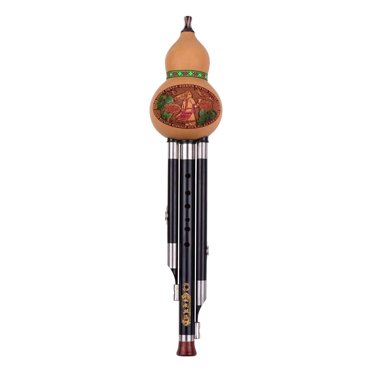 Hand carved natural gourd, plus high grade ebony tone pipe and drone pipes, exquisite workmanship.