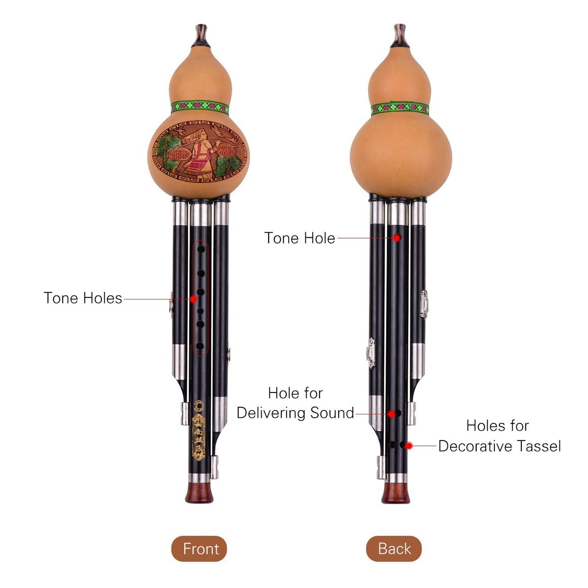 The center pipe has 7 finger holes for making different tones, providing you with pure and mellow sounds.