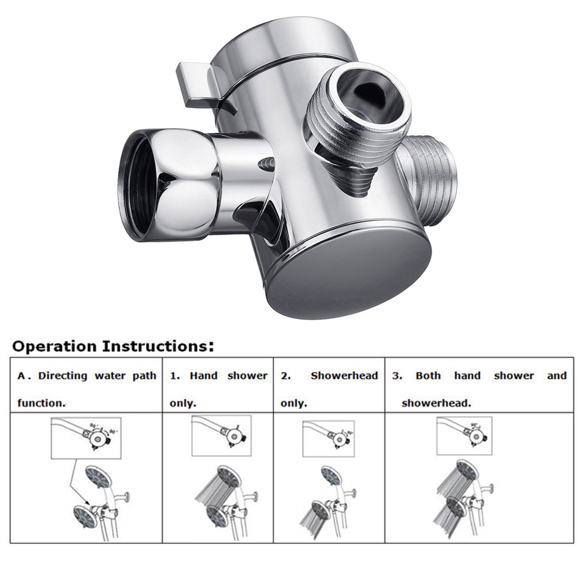 Description:The 3-way shower diverter valve is made of ABS material with polished chrome surface, corrosion-resistant and leak-proof. Switch water flow between hand shower and fixed shower head. Suitable for garden hoses, sprayers, standard hose via faucet diverter, etc.