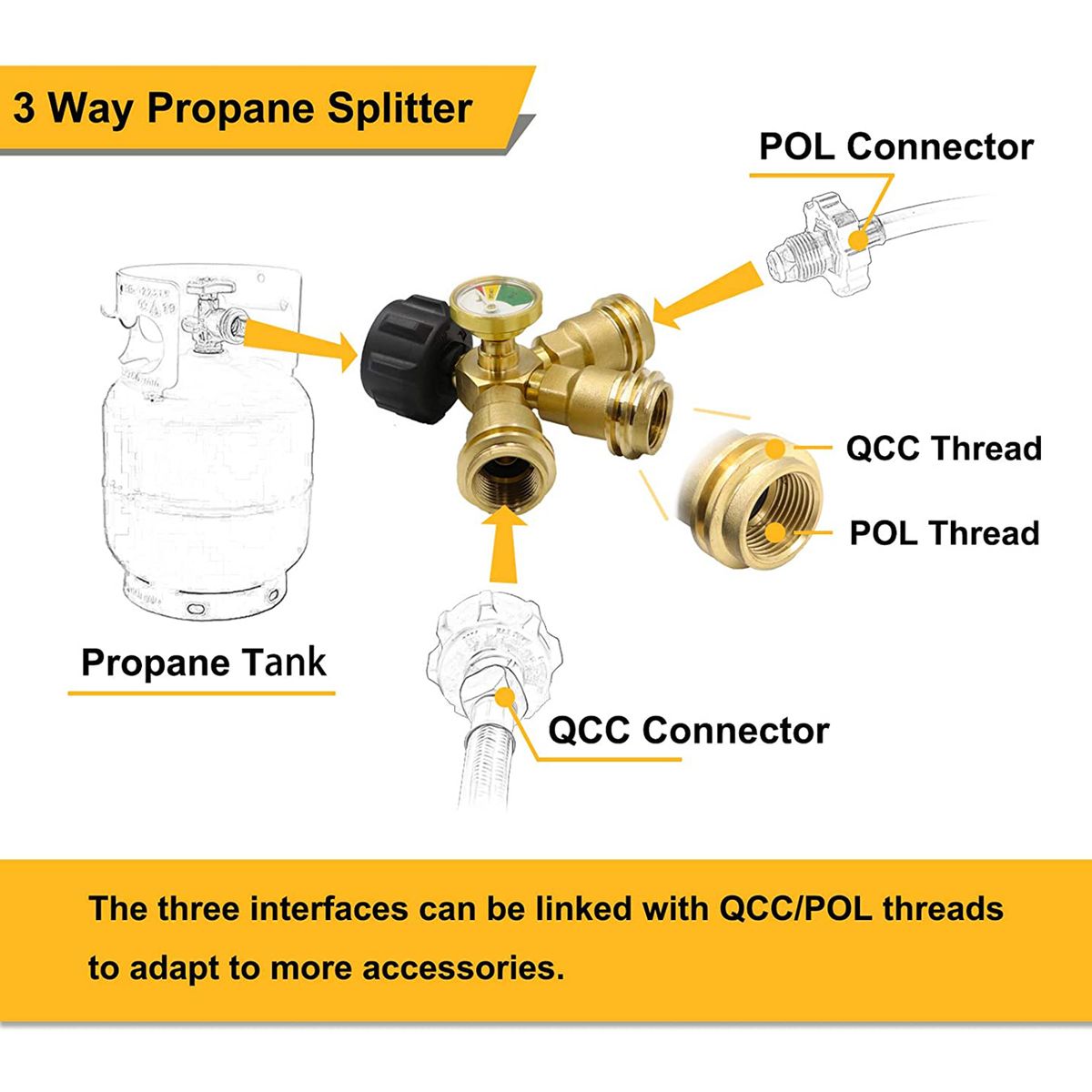 Used to deliver the propane gases in one propane tanks to three propane appliances.