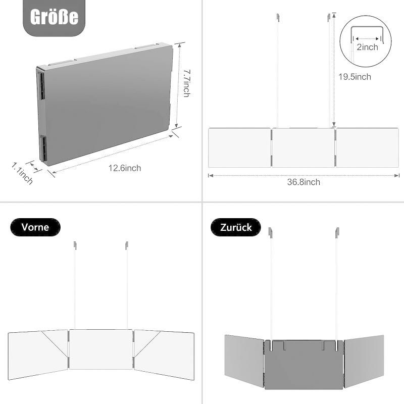 This self cut mirror could be used as a shaving mirror for men which could be hung on the door, window, wardrobe or on the table. All you need is a door to place the 3 way mirror for self hair cutting at the perfect height as needed. And it's easy to put the self cutting mirror in your suitcase when traveling.