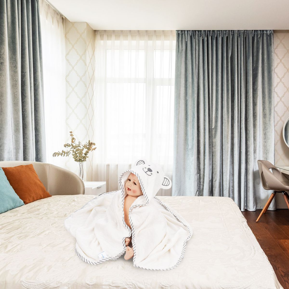 The hooded bath towels help to remove water from your precious ones\' skin quickly and avoid unnecessary irritation, keeping your newborn baby warm, dry, and snuggly after bath. The perfect addition to your bath time routine.