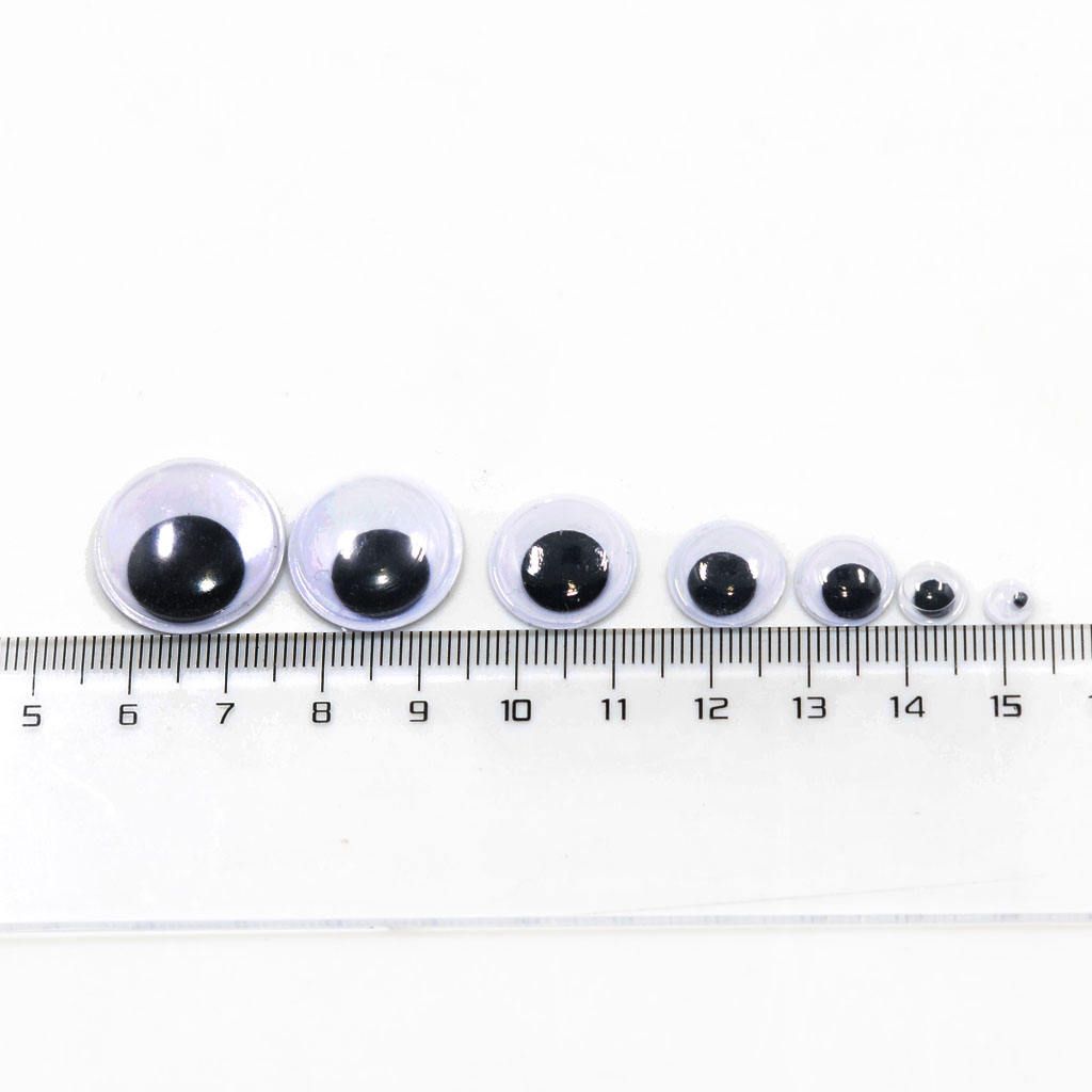 150 Pieces 5mm Wiggle Eyes 76 Pieces 7mm Wiggle Eyes 30 Pieces 10mm Wiggle Eyes 24 Pieces 12mm Wiggle Eyes 14 Pieces 15mm Wiggle Eyes 8 Pieces 18mm Wiggle Eyes 6 Pieces 20mm Wiggle Eyes