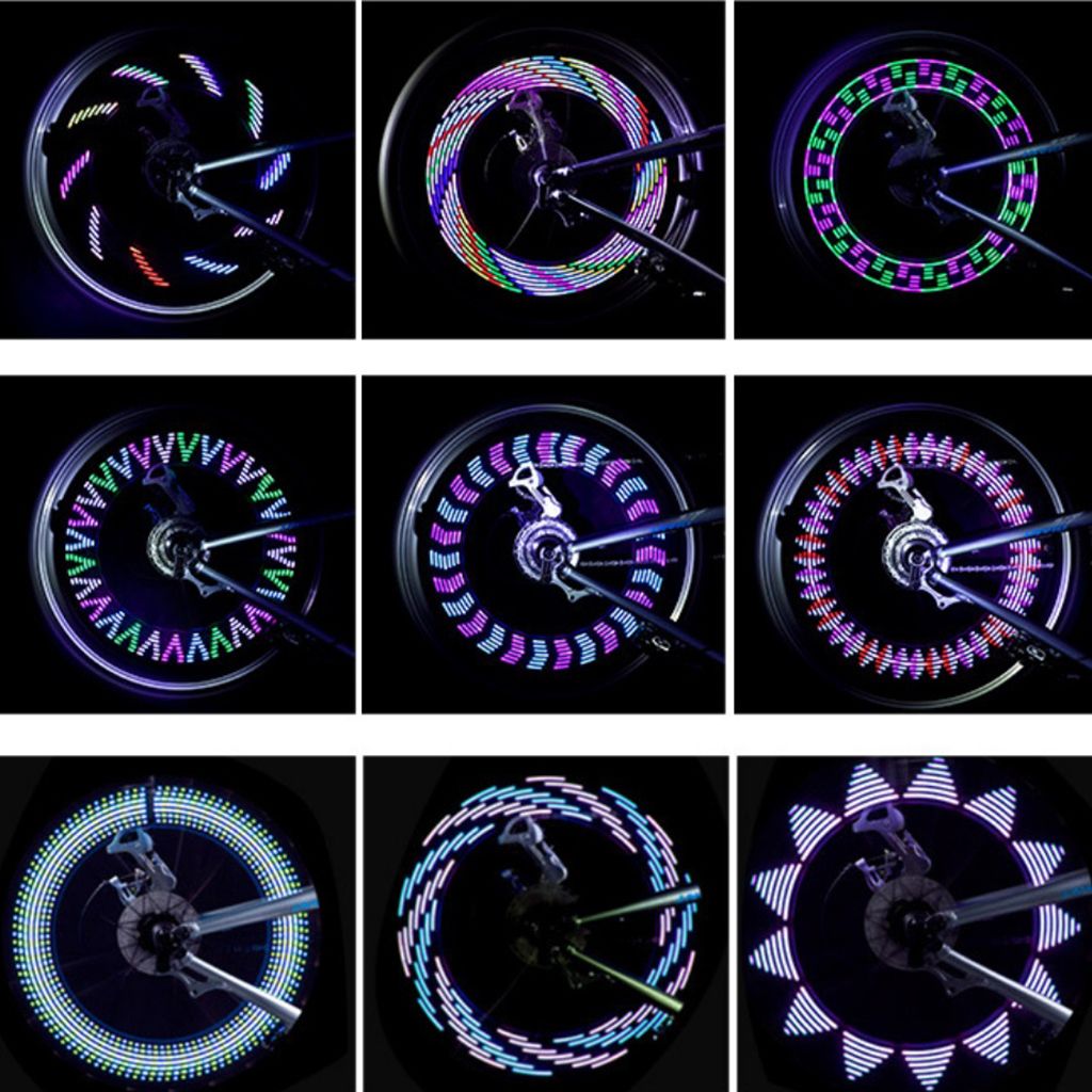 Bike Wheel Light;road bike wheel flash light bicycle spoke lights;cycling waterproof 30 patterns bike light decor;batteries powered bikes mtb wheel rim tire lights;night running safety cool bike spoke lights;outdoor automatic 14pcs led bicycle tire light