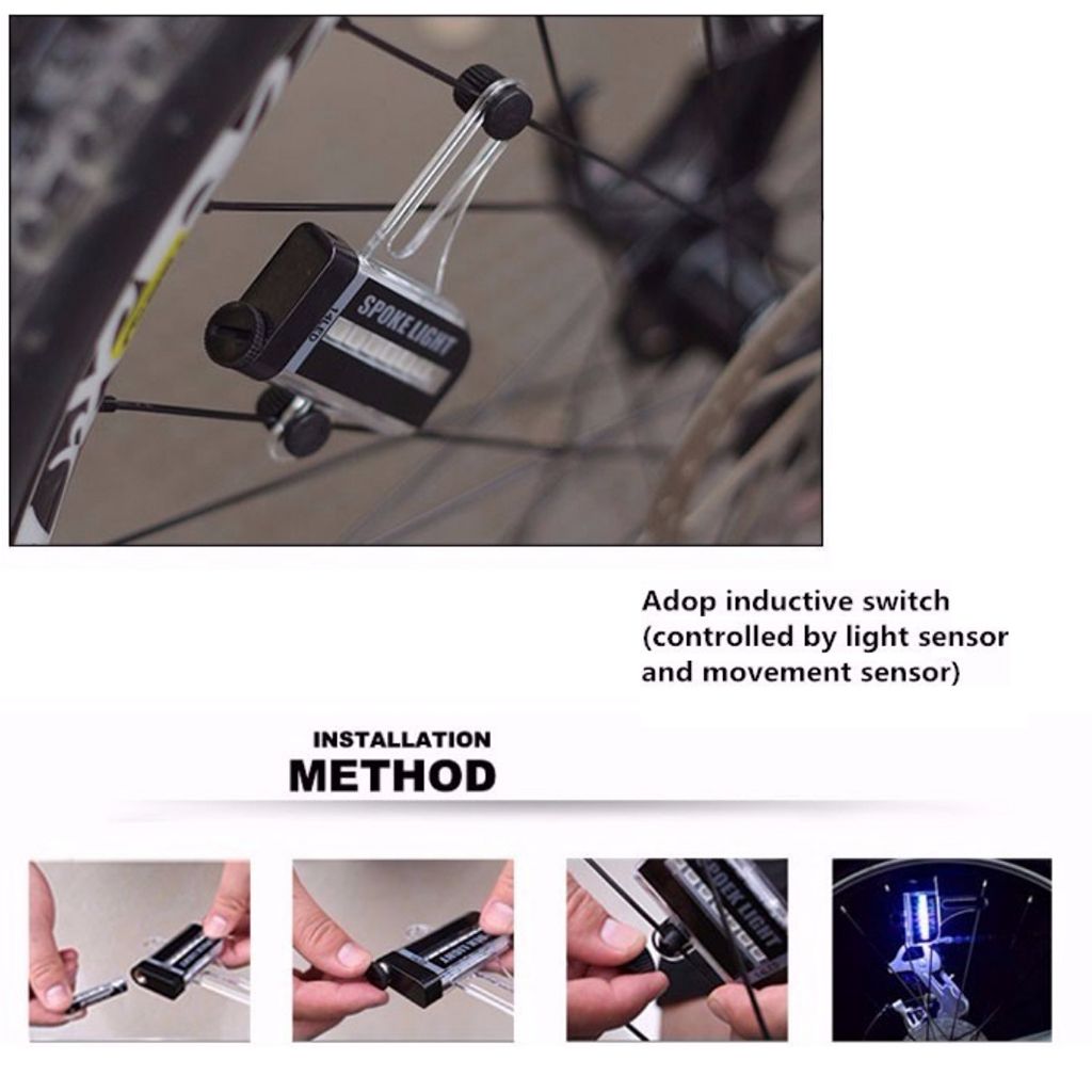 The product consists of 14pcs colorful LEDs, flash Spoke Light 30 Changes.