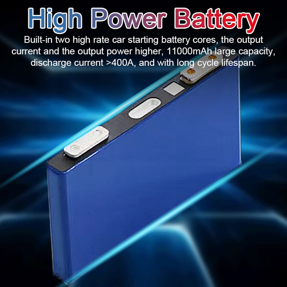 High Power Battery: Built-in two high rate car starting battery cores, the output current and the output power higher, 11000mAh large capacity, discharge current gt;400A, and with long cycle lifespan.