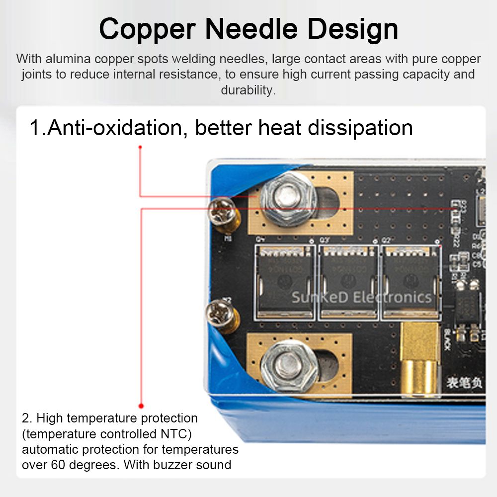 Copper Needle Design: With alumina copper spots welding needles, large contact areas with pure copper joints to reduce internal resistance, to ensure high current passing capacity and durability.