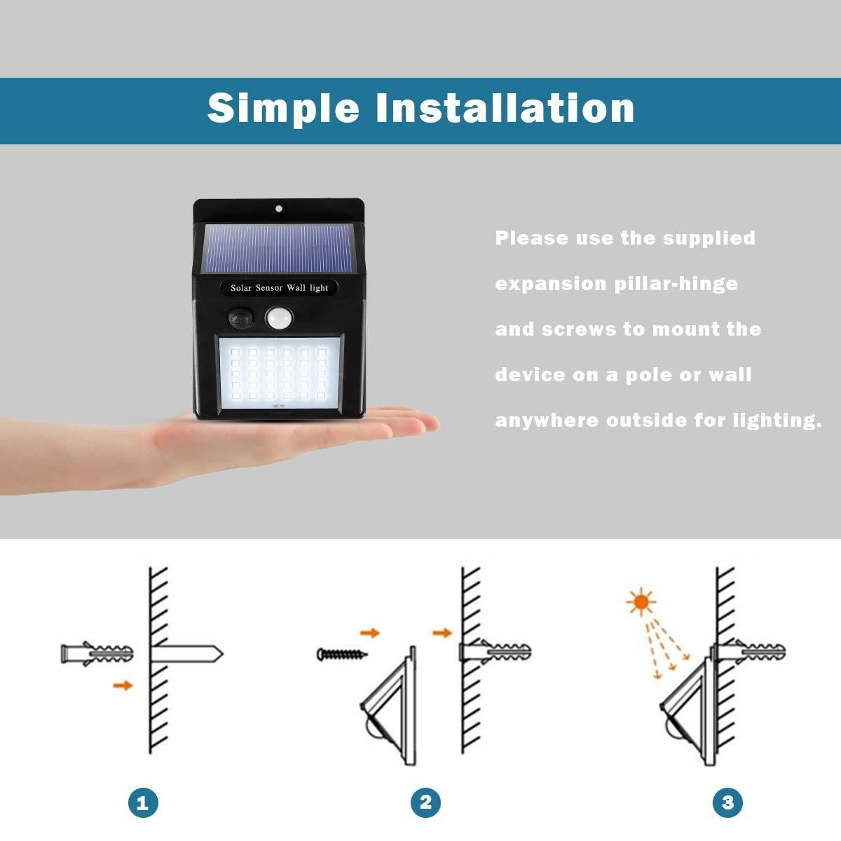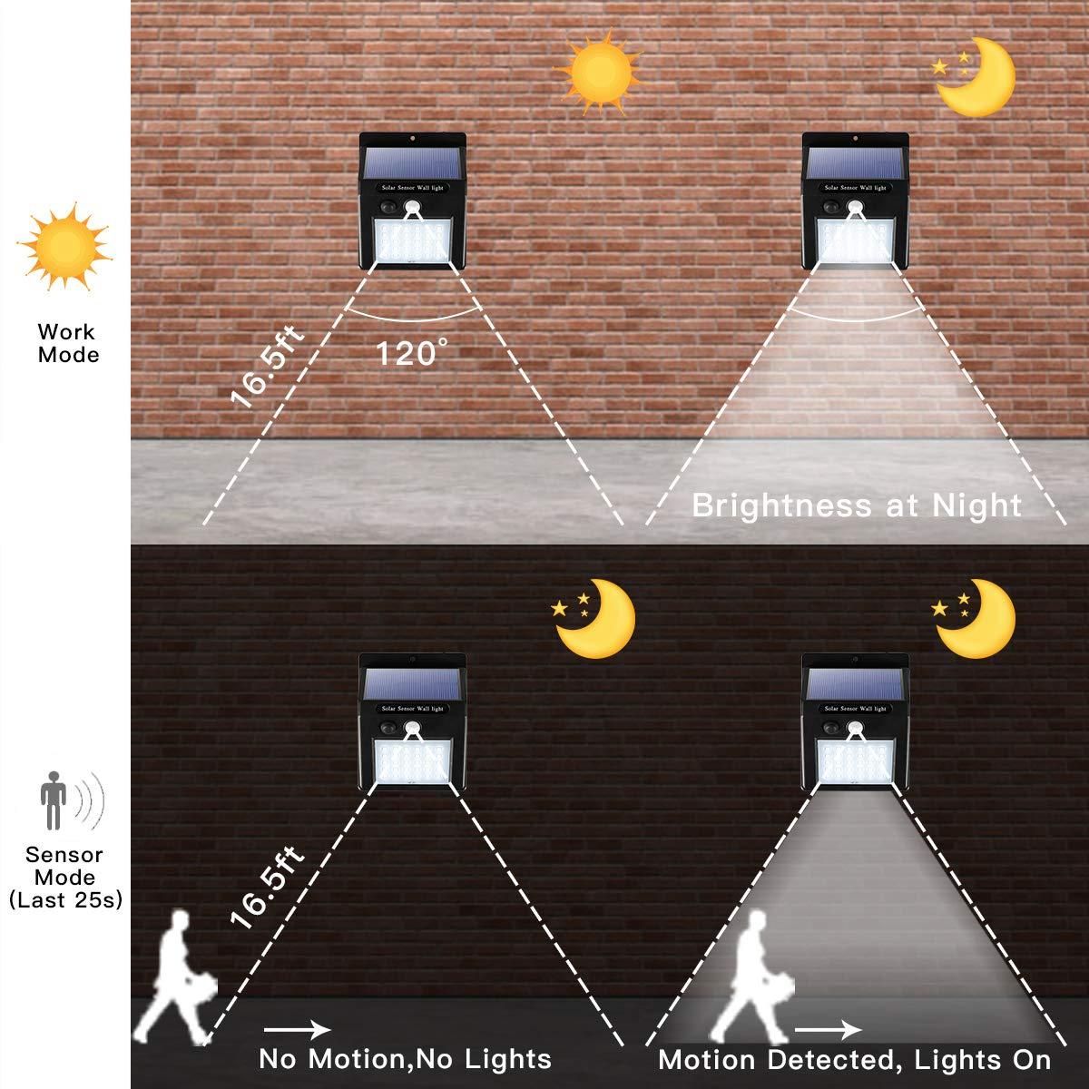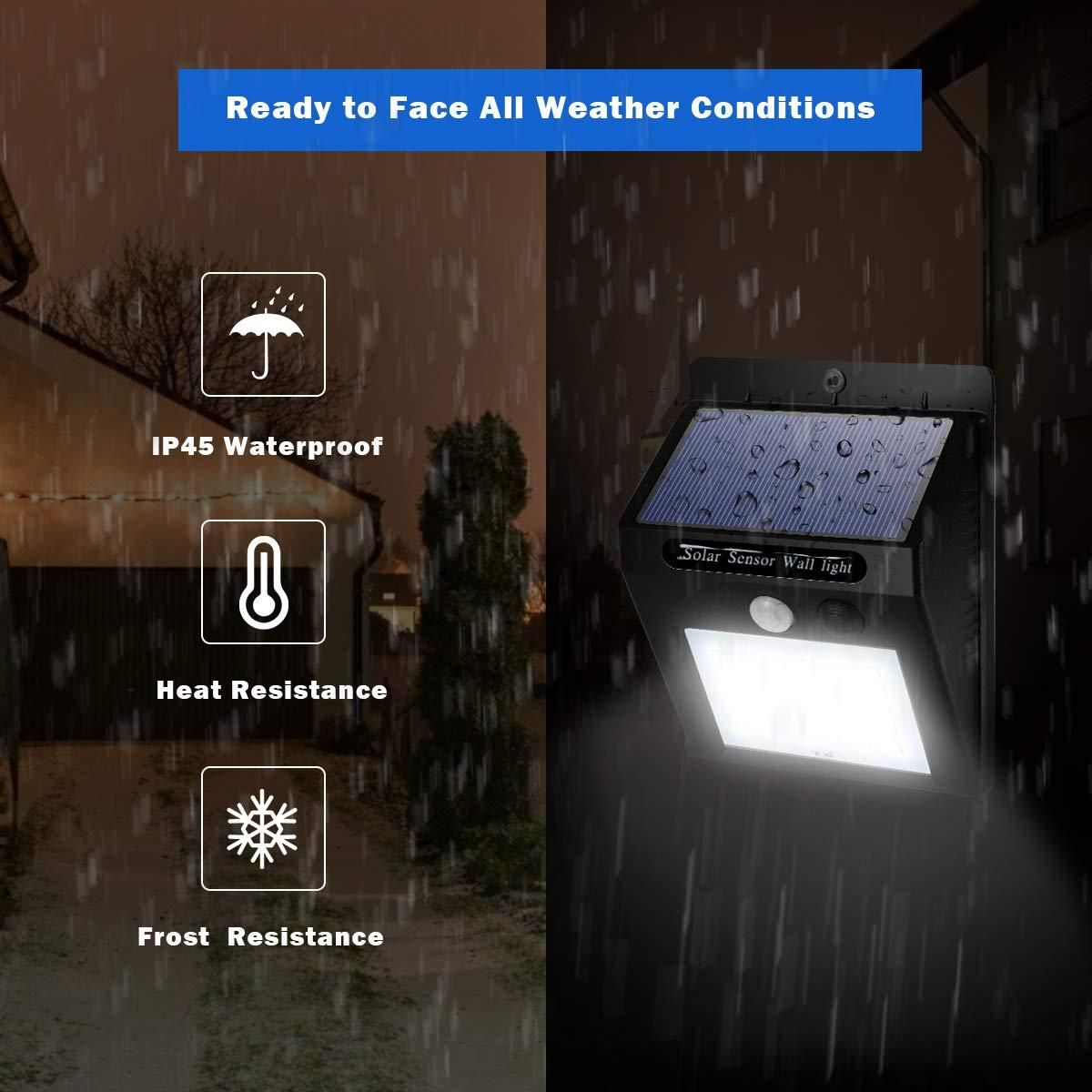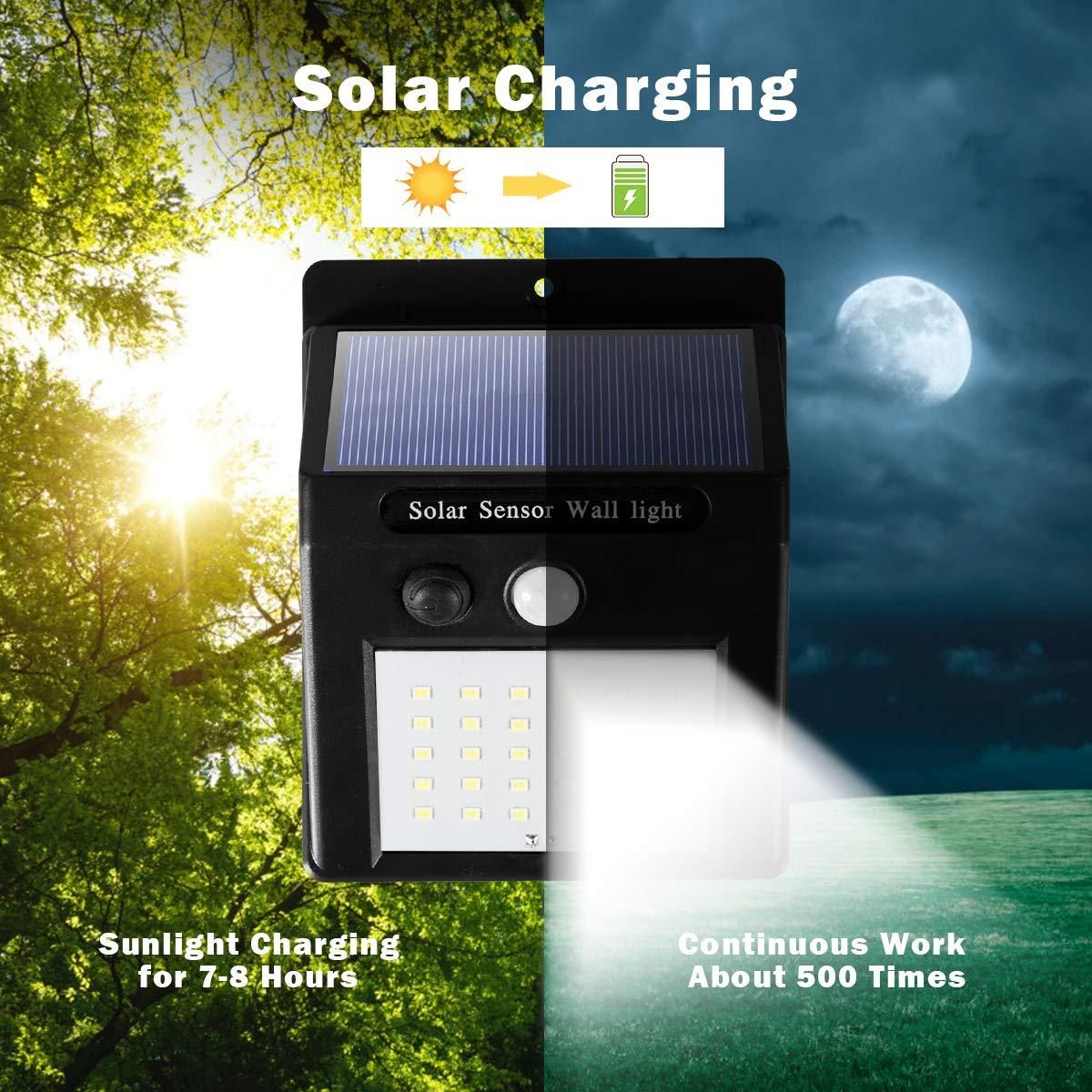 Efficient solar charging: motion sensor outdoor lights are powered by efficient solar charging.