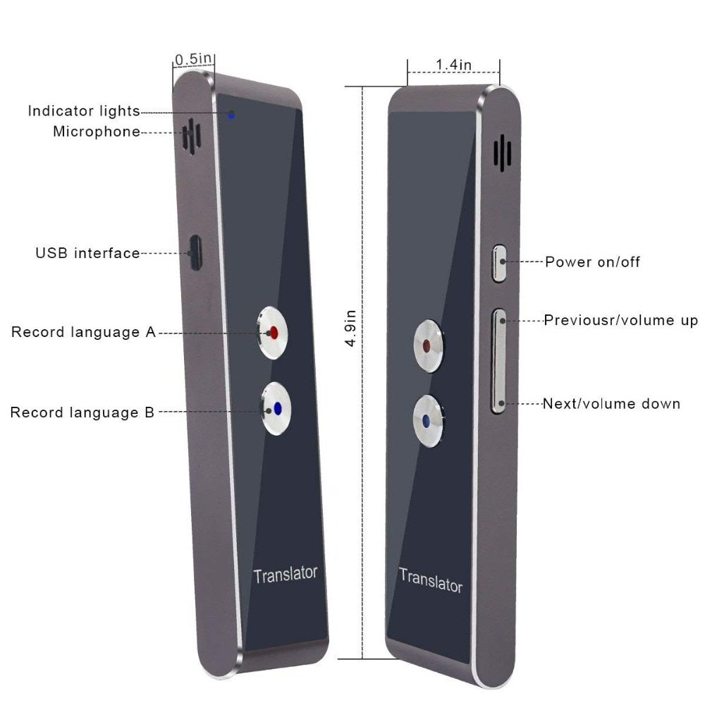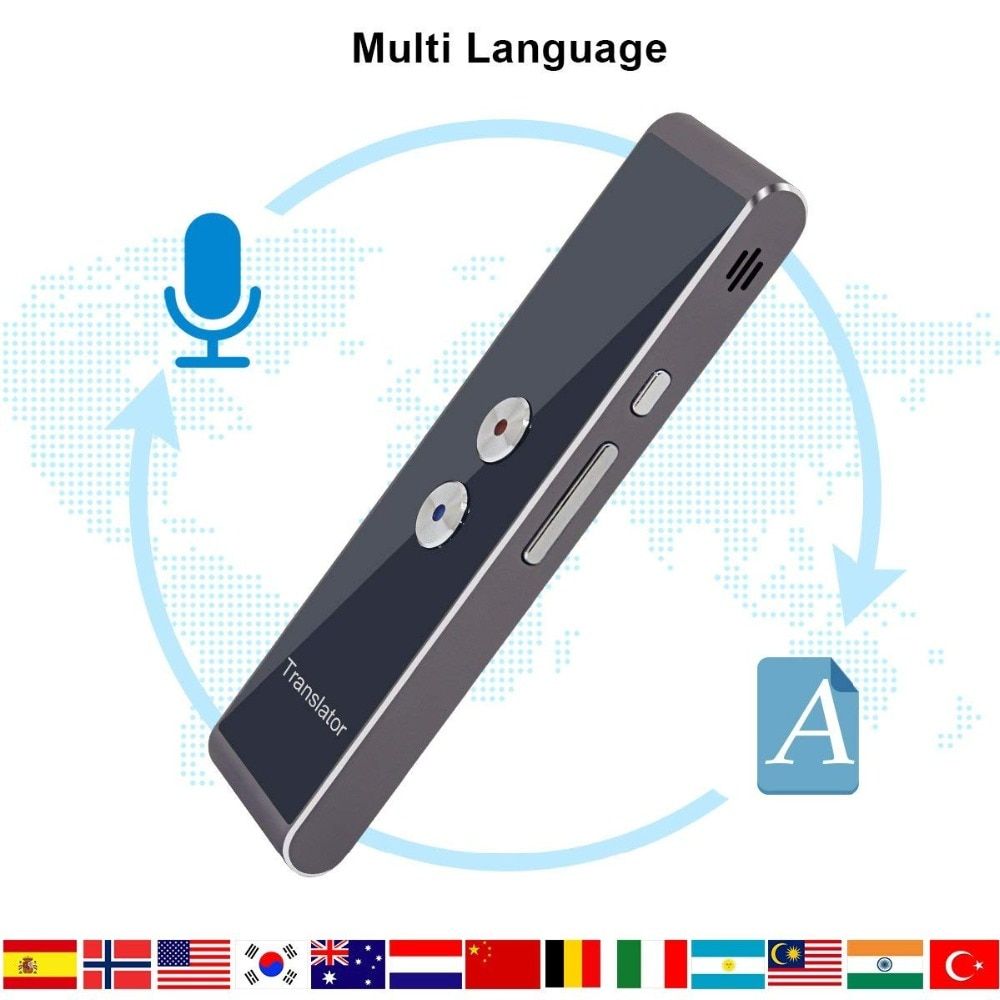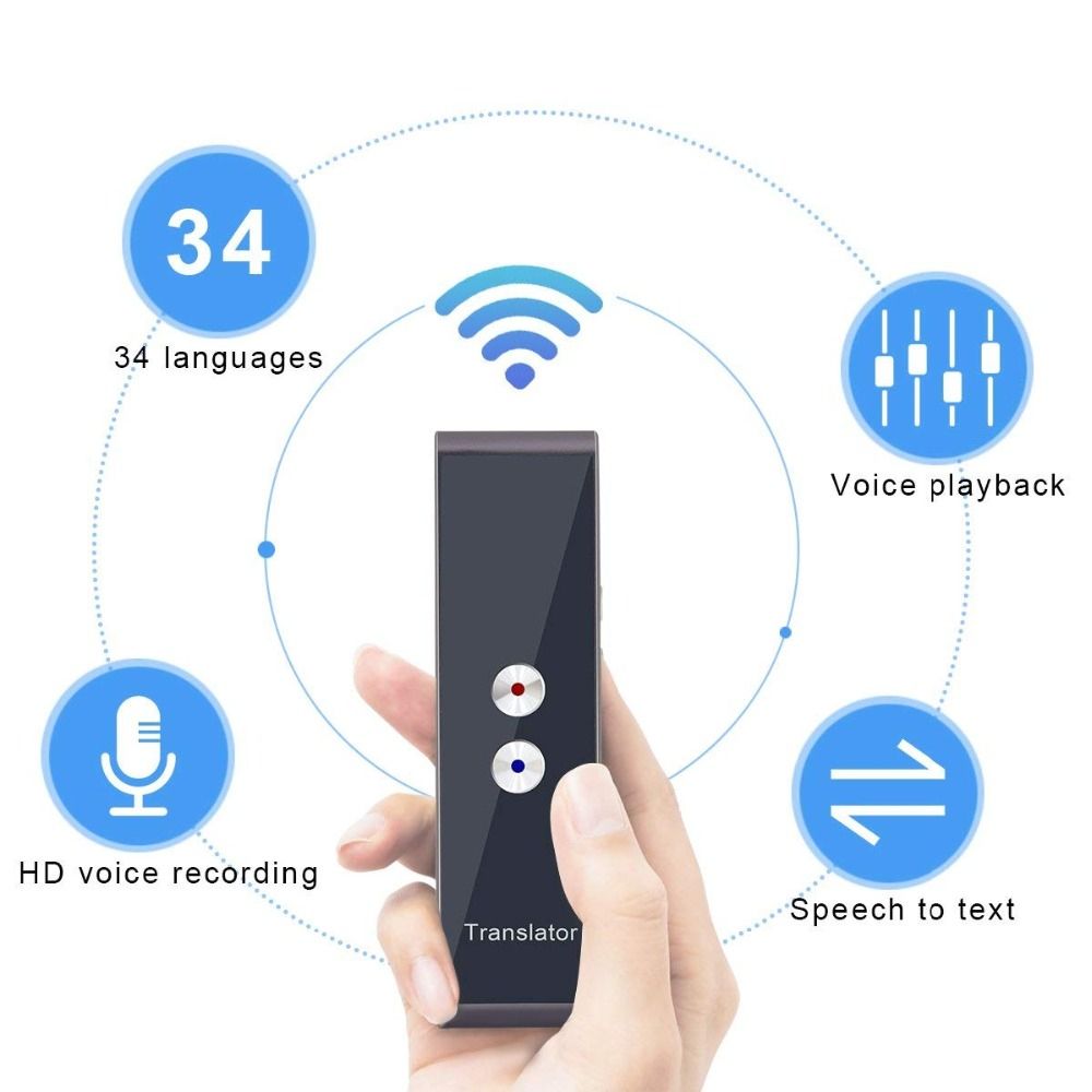 This product is a smart voice translator, a real time speech interactive translator that can translate English, Chinese, Japanese and more than 30 languages for learning, travelling, business, and meeting. Using intelligent speech recognition technology, it can translate recording sound into text, and simultaneously transmit into voice output. Clear sound quality, no noise, and easy to carry, a perfect assistant of language translation.