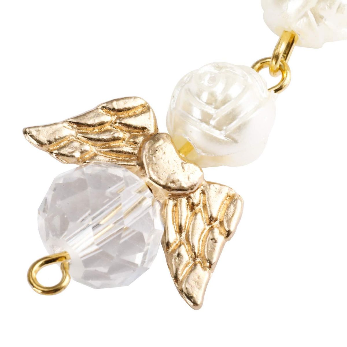 Great Design: All hand made, the acrylic ivory color beads with shape of a rosebud, features a beautiful angel at the end with heart on wings, pearlized material, beautiful center piece.