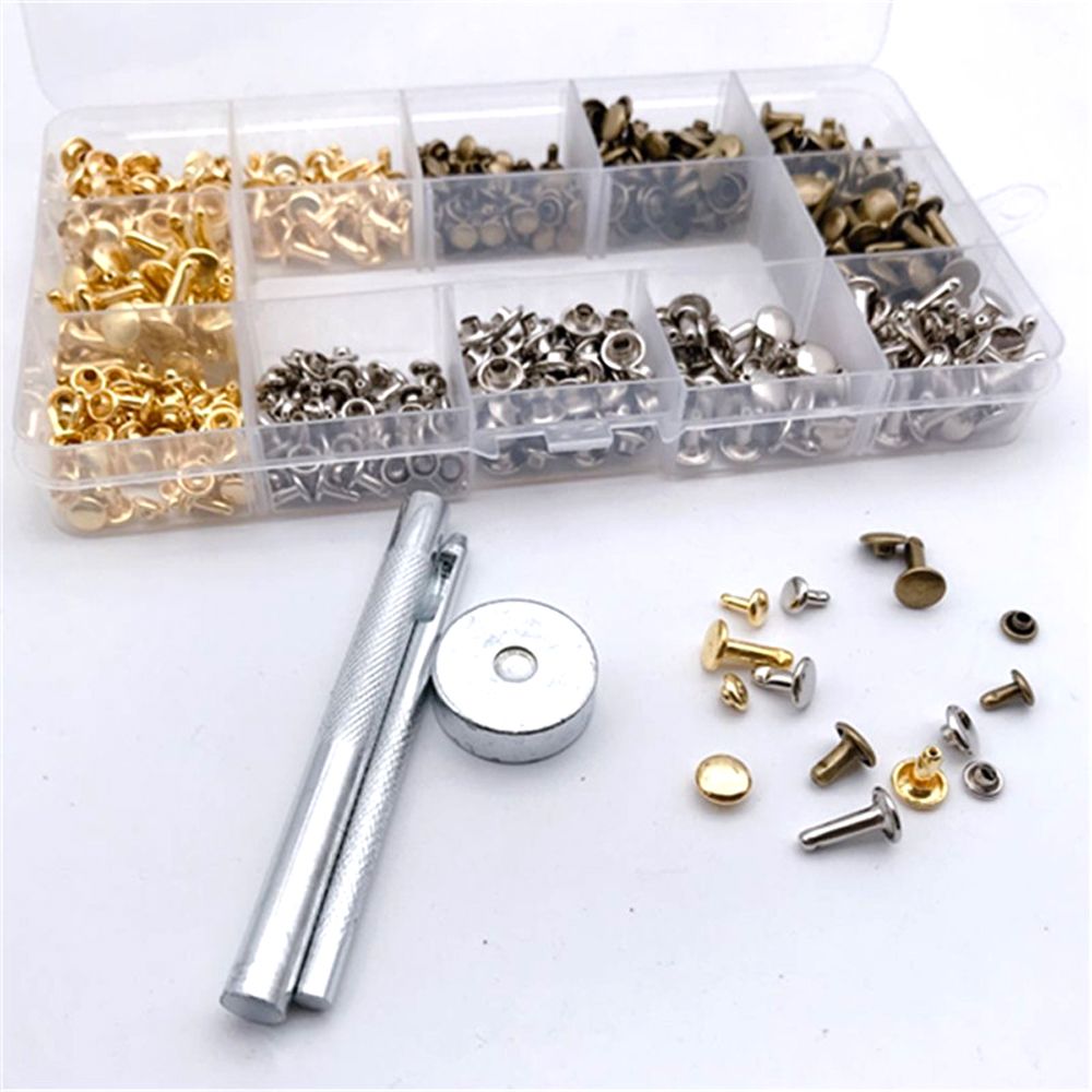 300 Piece Leather Rivets Double Cap Rivet Tubular Metal Studs With 4 Tools