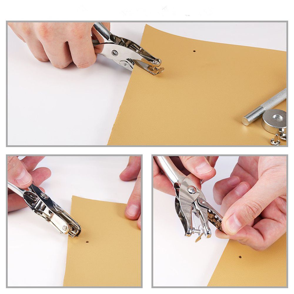 1x 300 Piece Rivets1x double-sided base1x punch stick1x Rivet mounting rod1x punching pliers1x storage box