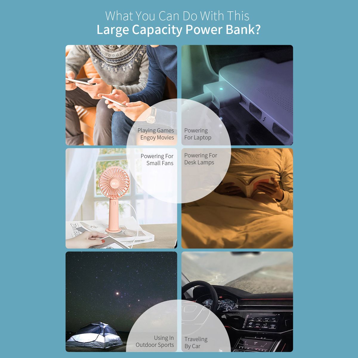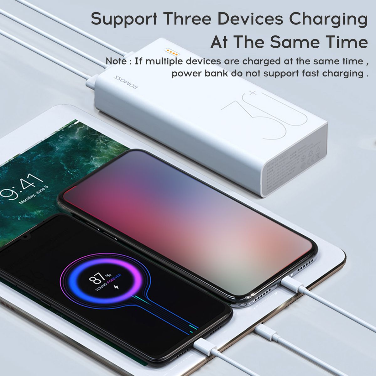 1 Week of Worry-free Power: Fully recharged , the 30,000mAh capacity gives 12.6 full charges to iPhone 8, 7.2 to Samsung S9, and 4 full charges to iPad mini 4. A Must-have for unlimited gamers, for camping, hiking and all kinds of fests.