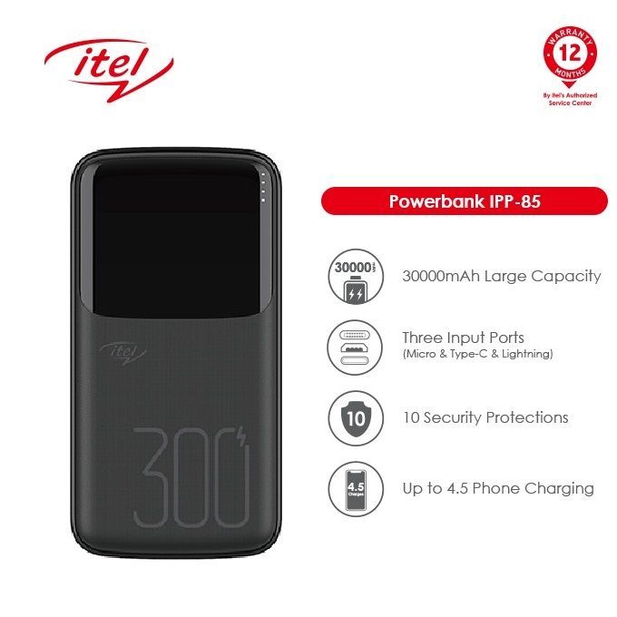 What You Get: Itel 30,000mAh USB Portable Charger ; 1 * USB Cable, 1 * 12 Month Warranty