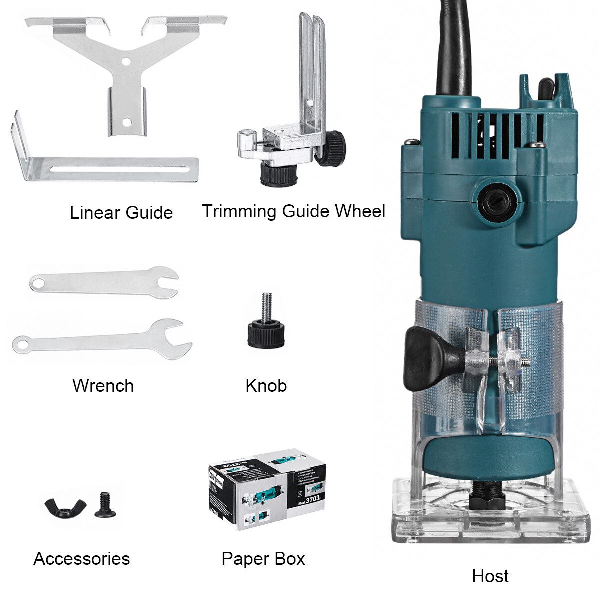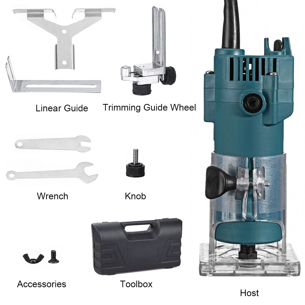 1 x Electric Wood Trimmer 1 Set Linear Guide 2 x Wrenches 1 x Trimming Guide Wheel 1 x Knob 2 x Accessories 1 x box (Optional)