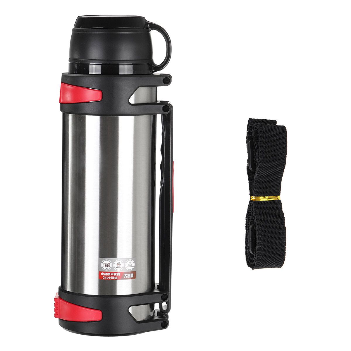 Features:* PREMIUM MATERIALS, HIGHLY DURABLE: Our insulated flask has inner and outer linings made of high-quality 304 stainless steel.* KEEP IT HOT, COLD TASTY FOR LONGER!: The double walled insulation maintains the temperature and flavor of drinks for up to 36 hours. Enjoy cold refreshments or hot drinks whenever, wherever.* SAFE TO USE, ENVIRONMENT-FRIENDLY: The materials we use are guaranteed. Works with any type of beverage. This reusable bottle fosters a "0" waste lifestyle.* CONVENIENT DESIGN, EASY TO CARRY AROUND: This large water bottle features a stainless steel cup and the one companion cup, sweat-proof exterior. The firm-grip handle, removable shoulder strap, and LEAK-PROOF design make it highly portable!* PERFECT FOR YOUR ACTIVE LIFESTYLE: Take this flask with you as you go jogging, hiking, or traveling. Its robust build can any activity. Get refreshments when you most need it!