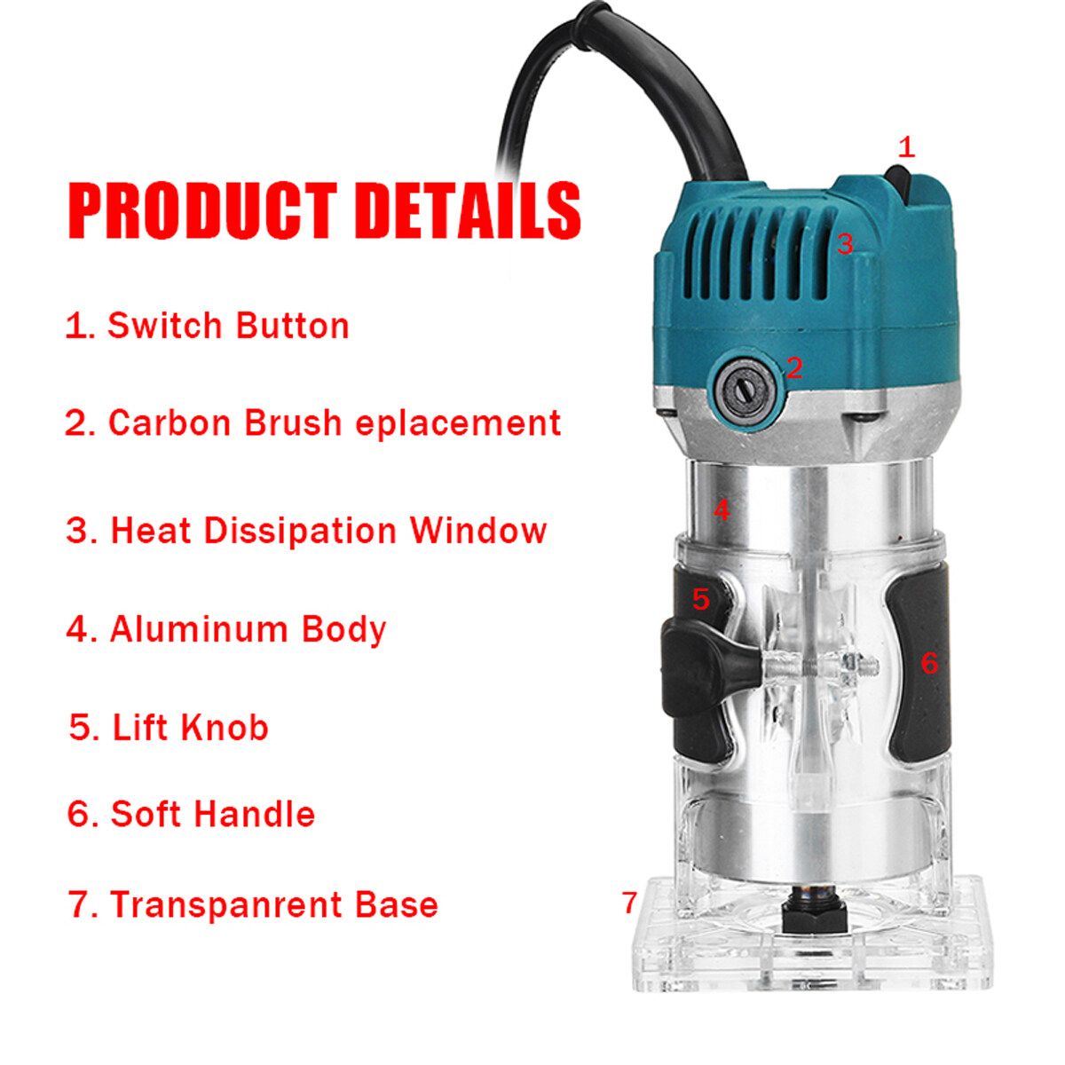1 x Electric Trimmer Wood Tool 1 x Straight Guide 1 x Trimming Idler 2 x Wrenches 1 Set Of Installation Kit 1 x Manual