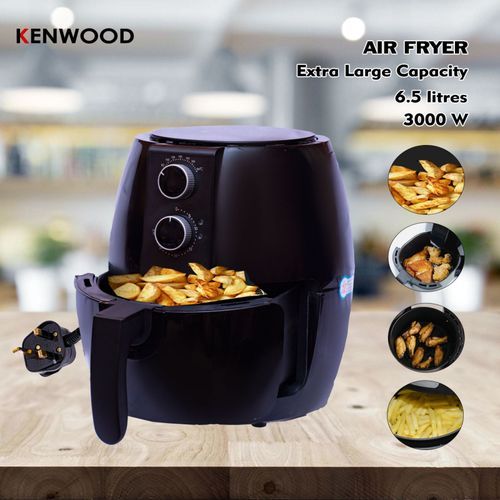 3000W. You Need Only 1 Spoonful of Oil. You Can Use It To Fry, Roast, Grill, Bake etc. Low oil fryer - Rapid air circulation, Manual control Knob Time setting range 0-60 minutes, Adjustable Temperature 80-200 degree, Less 80% fat than traditional fryers., Power: 3000W, 7 pre-set programs, Time setting range 0-60 mins, The capacity of the basket 6.5L (around 1.2Kg), Removable non-stick bowl with handle, SS heating elements, Nonslip feet, Overheat protection, Overheat protection, Easy to clean, all accessories detachable. This Kenwood Air fryer Has 6.5L Capacity, 3000W. It Comes With Standard Manual Control Knob. You Need Only 1 Spoon Oil. You Can Use It To Fry, Roast, Grill, Bake etc. Low oil fryer - Rapid air circulation, Manual control Knob, Time setting range 0-60 minutes, Adjustable Temperature 80-200 degree, Less 80% fat than traditional fryers., Power: 3000W, 7 pre-set programs, Time setting range 0-60 mins, The capacity of the basket 6.5L (around 1.2Kg), Removable non-stick bowl with handle, SS heating elements, Nonslip feet, Overheat protection, Overheat protection, Easy to clean, all accessories detachable