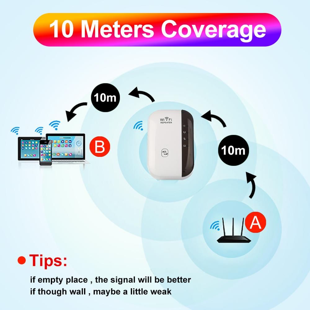 Our Wifi repeater extends your existing Wi-Fi coverage, extend wireless network to hard-to-reach areas. Clear WiFi dead zones simply! Farewell signal weak or broken, improve network strength, you just need an signal repeater!