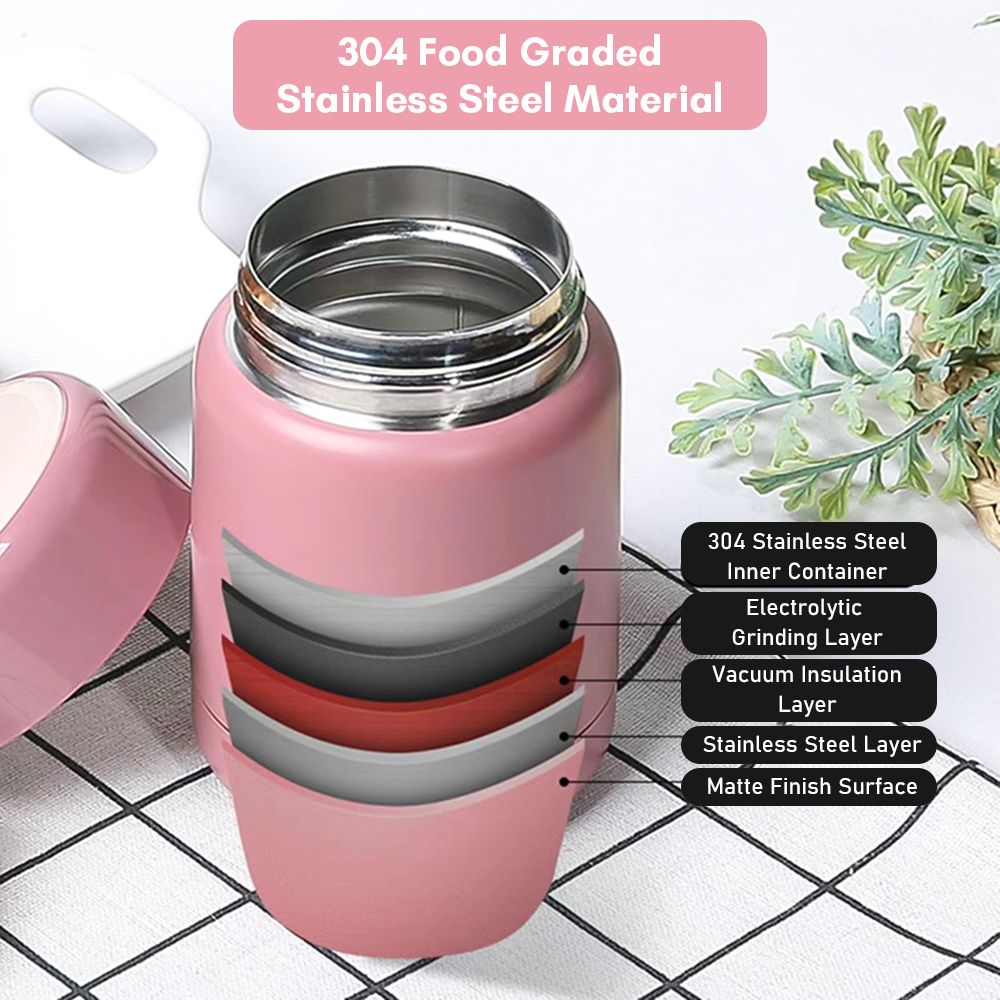 The food jar is made of food-graded 304 stainless steel with vacuum insulation technology, which can hold the hot food in ideal temperature to preserve freshness and flavor.